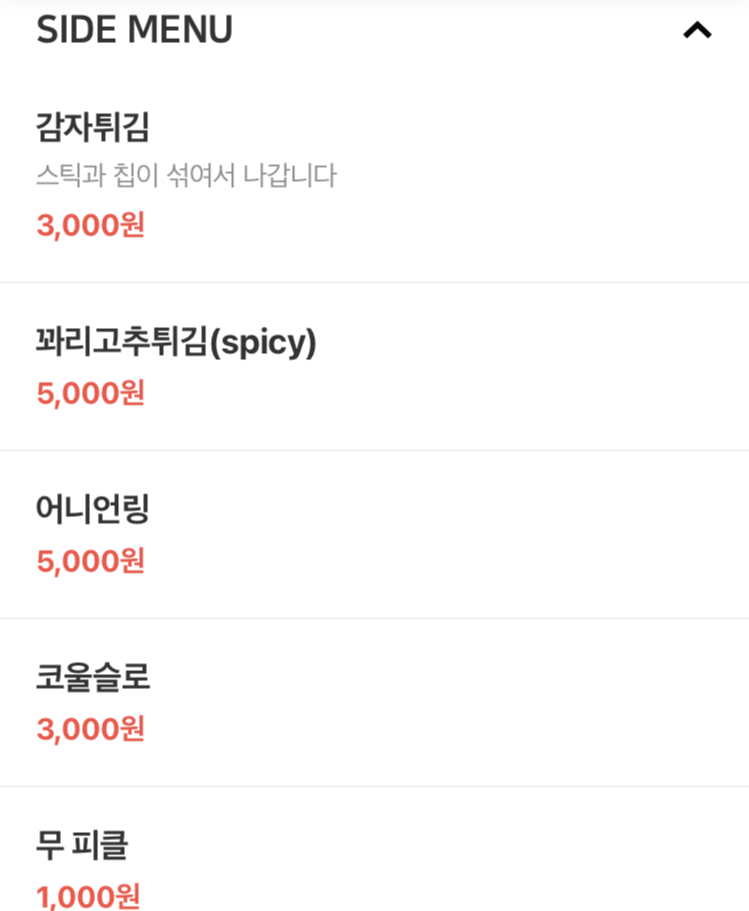 바삭하게 잘 튀기시는 것 같아서, 튀김 종류는 다 맛있을 거 같아요. 다음에는 어니언링도 시켜보고 싶네요.