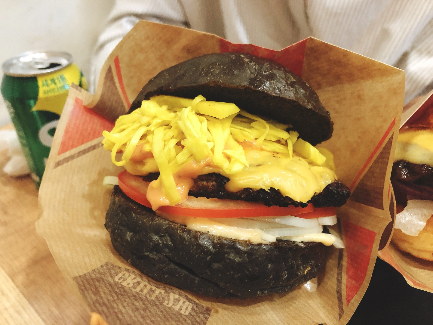 검정색 먹물번이 특징인 210버거도 오지버거와 많이 다른 느낌은 아니었는데요. 다만 쇠고기패티가 오지버거에 들어있는 것보다 좀 더 갈려져 있는 느낌이라 부드러웠고(다른 쇠고기패티를 쓰는지는 불확실) 생양파가 좀 많이 들어 있는 편이었어요. 제 남자친구는 생양파를 싫어해서 다 빼서 먹던데, 저도 그냥 양파보다는 구운 양파가 더 좋았을 거 같다는 생각이 들었어요. 그래서 그런지 제 남자친구는 오지버거가 더 낫다고 하더라구요.