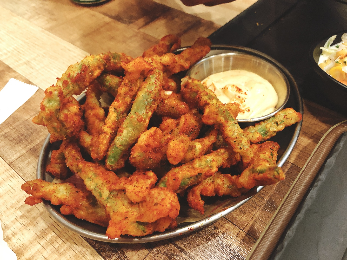 저는 밑의 사장님 추천메뉴에 있던 210버거와 오지버거를 세트로 주문했고, 꽈리고추튀김도 추가주문했습니다. 버거메뉴를 세트로 먹으면 코울슬로와 음료가 같이 나오고, 가격은 버거 가격에 3000원씩 추가가 됩니다. 여기서 코울슬로를 감자튀김으로 업그레이드 시킬 수 있는데, 500원이 더 추가됩니다. 식당 안을 보니 거의 모든 분들이 감자튀김으로 업그레이드해서 먹는 것 같았어요. 저는 하나만 업그레이드해서 감자튀김과 코울슬로 둘 다 먹어보았습니다.