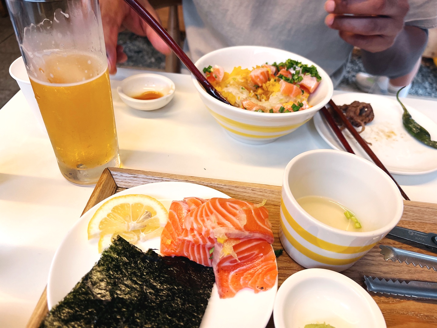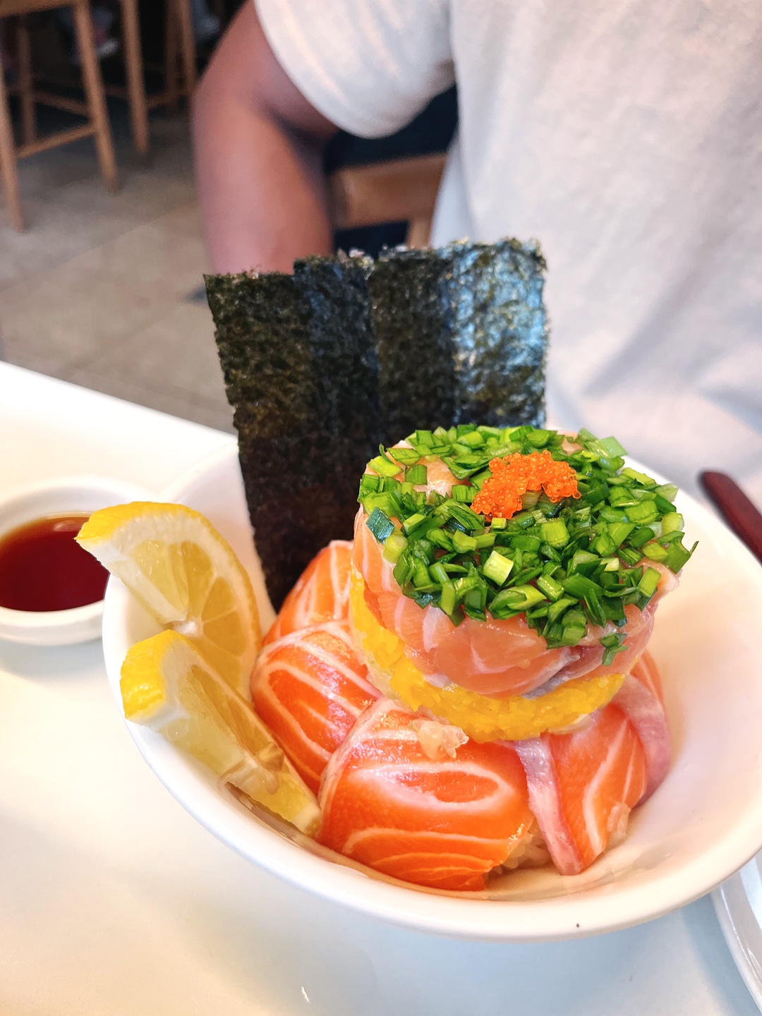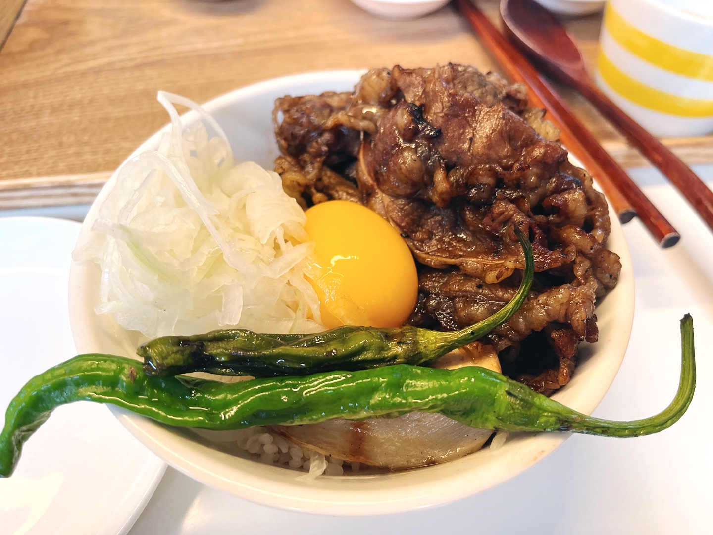 사케동(14,000)과 야끼규동(11,000)을 시켰는데, 생각보다 작은 볼에 담겨져 나오긴 했지만 비쥬얼이 너무나 훌륭했어요! 너무 탐스럽고 맛있어 보였어요. 야키규동은 불향이 확 나서 식욕이 돋더라구요. 느끼한까봐 같이 나온 꽈리고추구이도 센스👍👍 메뉴판과 함께 어떻게 먹어야 되는지도 덮밥 별로 자세히 쓰여져 있었는데요. 탑처럼 이쁘게 쌓아올려놓은 사케동은 위에 파가 올려져 있는 부분 빼고는 연어를 덜어내어 김과 레몬도 함께 다른 접시에 놓은 후, 나머지를 비벼서 먹으라고 나오더라구요. 사케동의 쯔유도 짜지 않고 딱 적당한 간이라서 좋았고, 야키규동은 와 진짜 불맛이 나서 너무 맛있었어요! 다음에 또 와도 또 같은 메뉴를 시킬 거 같아요. 그 정도로 만족스러운 메뉴였어요! 다른 덮밥들도 많이 있긴 해서 그 때는 다른 것도 도전해보고 싶긴 하지만요.