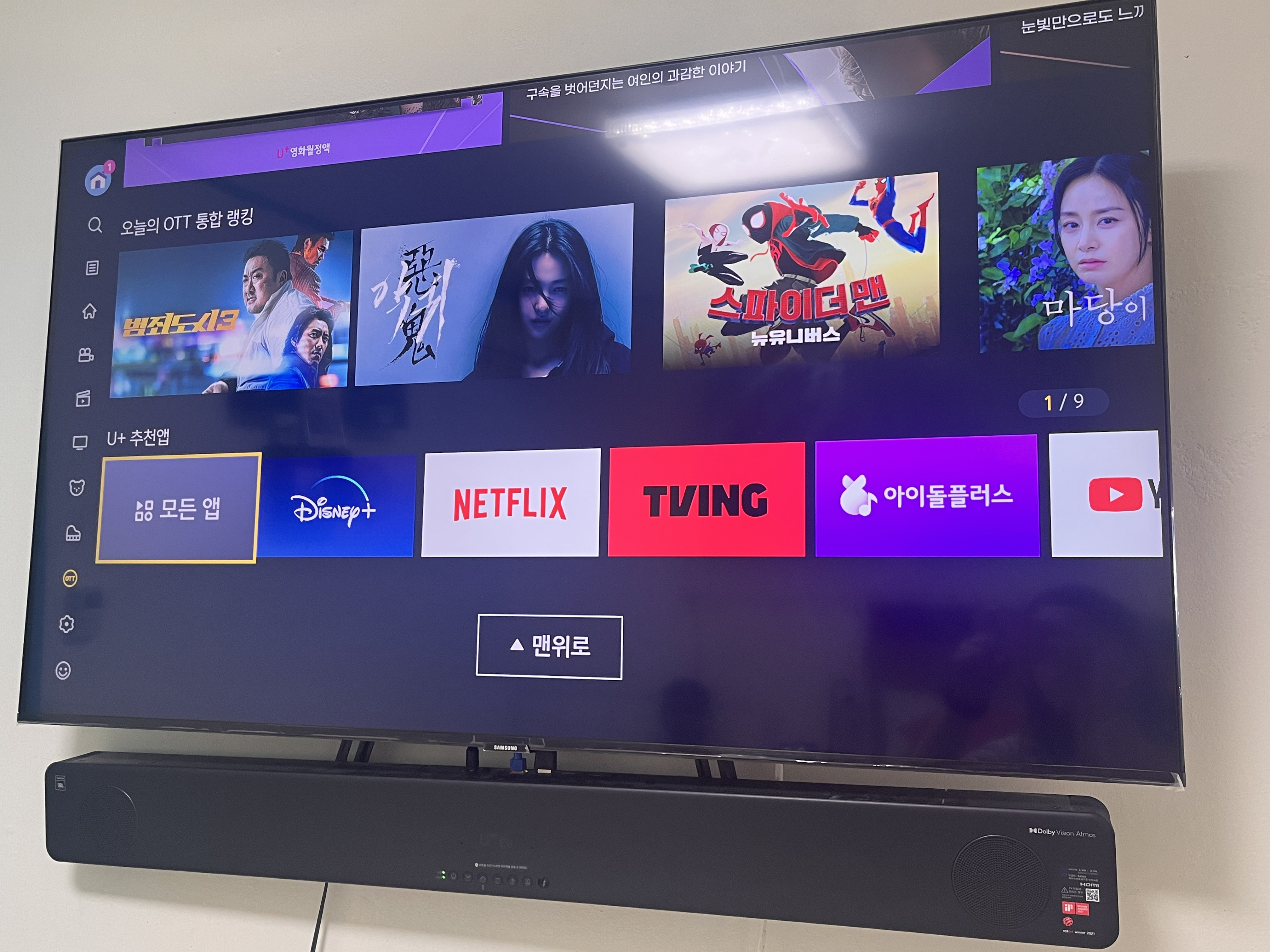 일단 리모컨으로 "홈"버튼을 누르고 카테고리 "OTT"로 들어가 "모든앱"을 클릭해줍니다.