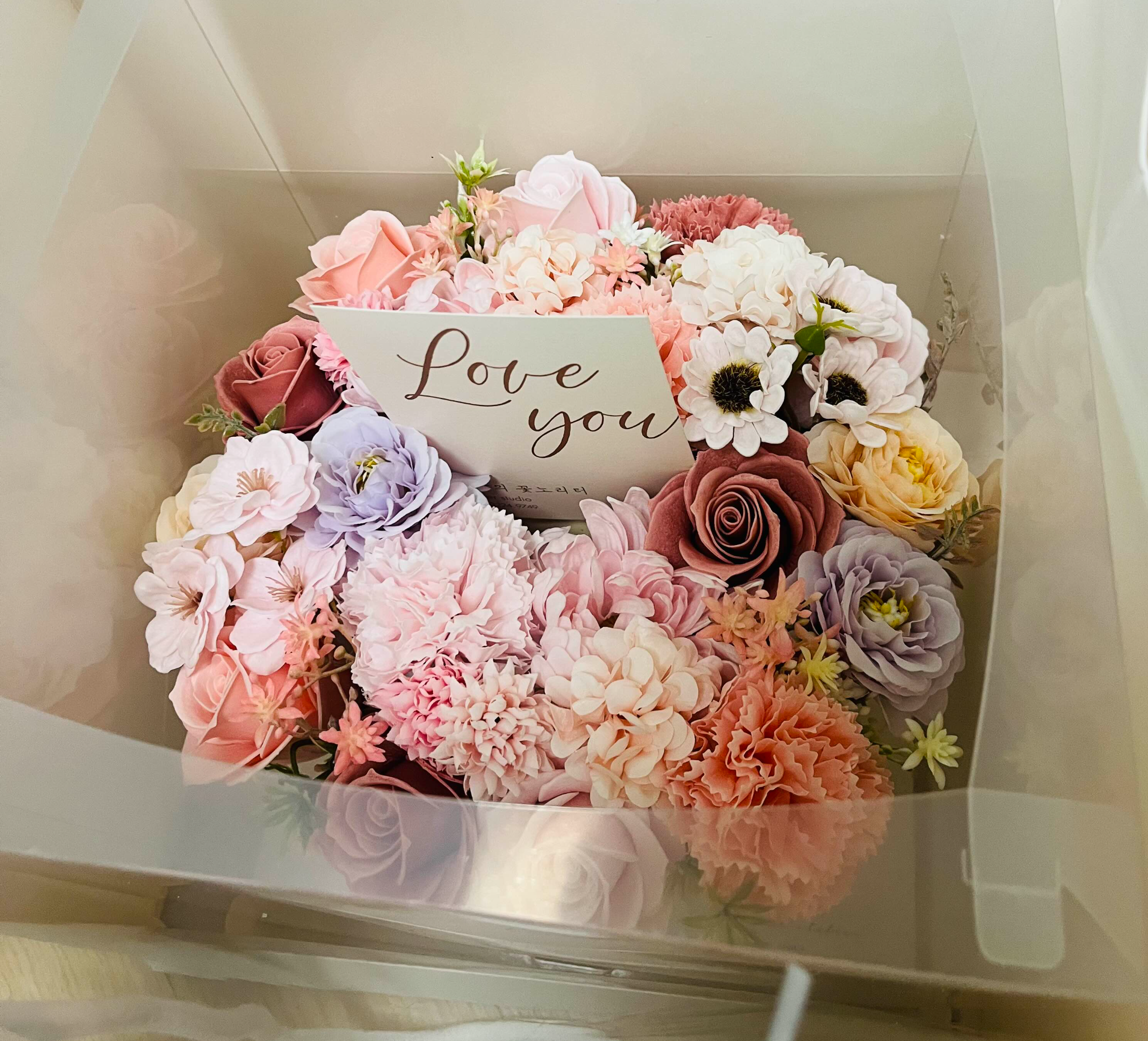 조화구성도 좋고 위에 카드가 꽂혀 있어서 카드를 뽑으면 카드에 붙어 있는 지폐가 나오는 형식이라