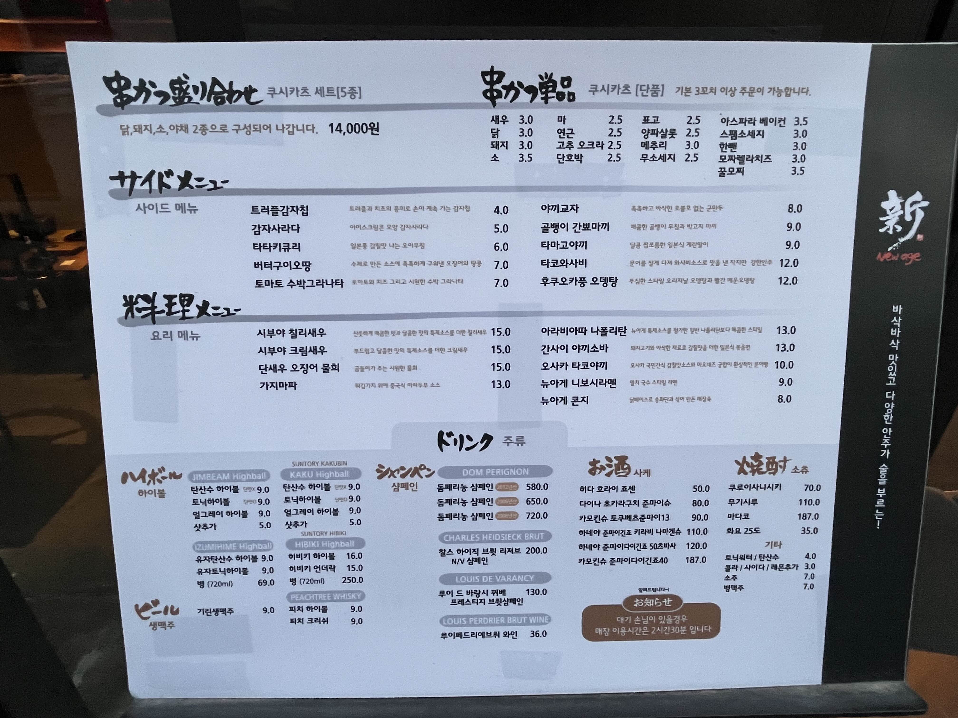 여자 둘이서 배도 안 부르게 먹었는데 106,000원 나왔네요ㅋㅋㅋ 여기는 2차로 쿠시카츠랑 감자사라다만 시켜서 한 잔 먹고 가시는 정도가 좋을 거 같아요! 메인메뉴는 가성비가 극악이니, 패스하시는 걸 추천합니다.