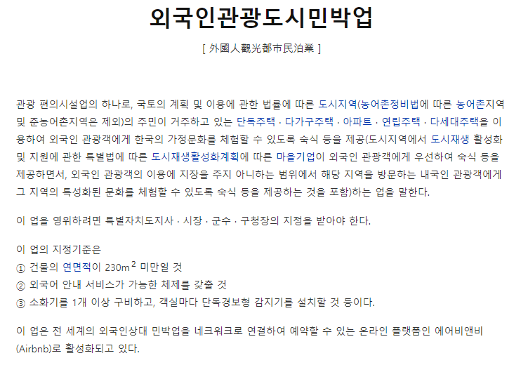 요즘 에어비앤비 불법 운영자들이 대거 검거되어 벌금을 물고 있다는 기사가 많이 나오고 있는데요. 여러분은 에어비앤비에 대해서 알고 계시나요? 저도 관심이 있어서 갓 사업을 시작한 작은 지식으로 간단히 말씀드리면 살고 있는 집에 숙박할 게스트를 받는 민박업을 하는 호스트들이 예약을 받을 수 있는 플랫폼입니다. 우리나라 사람들이 여행을 할 때 주로 이용하는 숙박업소는 호텔, 모텔, 리조트, 펜션 등이기 때문에 민박이라고 하면 바닷가에 놀러 갔다가 급하게 묵을 곳을 찾을 때 동네에 사는 사람들이 민박 간판을 걸어놓고 있는 곳에 묵을 수 있는지 묻는 그림을 그리게 될지도 모르겠습니다만 우리가 살고 있는 일반적인 동네에서도 에어비앤비를 통해 민박업을 운영하고 있습니다. 에어비앤비라는 이름을 보면 알 수 있듯이 "Airbnb = Airbed + Breakfast"  꼭 게스트룸이 없더라도 거실 한 공간에 공기침대와 아침만 제공해주고 숙박비를 받는 개념으로 시작했다고 합니다. 우리나라에서는 10년전쯤부터 알려지기 시작했지 않나 싶습니다. 그런데 왜 이게 불법이냐. 예전엔 이걸 그저 월세를 조금 충당할 수 있을 정도의 금액만을 벌 수 있는 것으로 치부했지만, 지금은 자기가 사는 집 말고도 여러 집을 운영하면서 일반 직장인의 월급을 벌고, 더 나아가서는 그의 몇 십배도 벌기 시작한 사람들이 있기 때문입니다. 소득이 그만큼 많아지면 소득신고를 하고 세금도 내야하니까요. 즉, "외국인관광 도시민박업"이라는 이름으로 허가를 받고 사업자등록을 한 후에 운영해야 합니다. 그런데 사업자등록을 하지 않고 소득신고도 하지 않고 계속 운영하는 사람들이 있었던 것이죠.