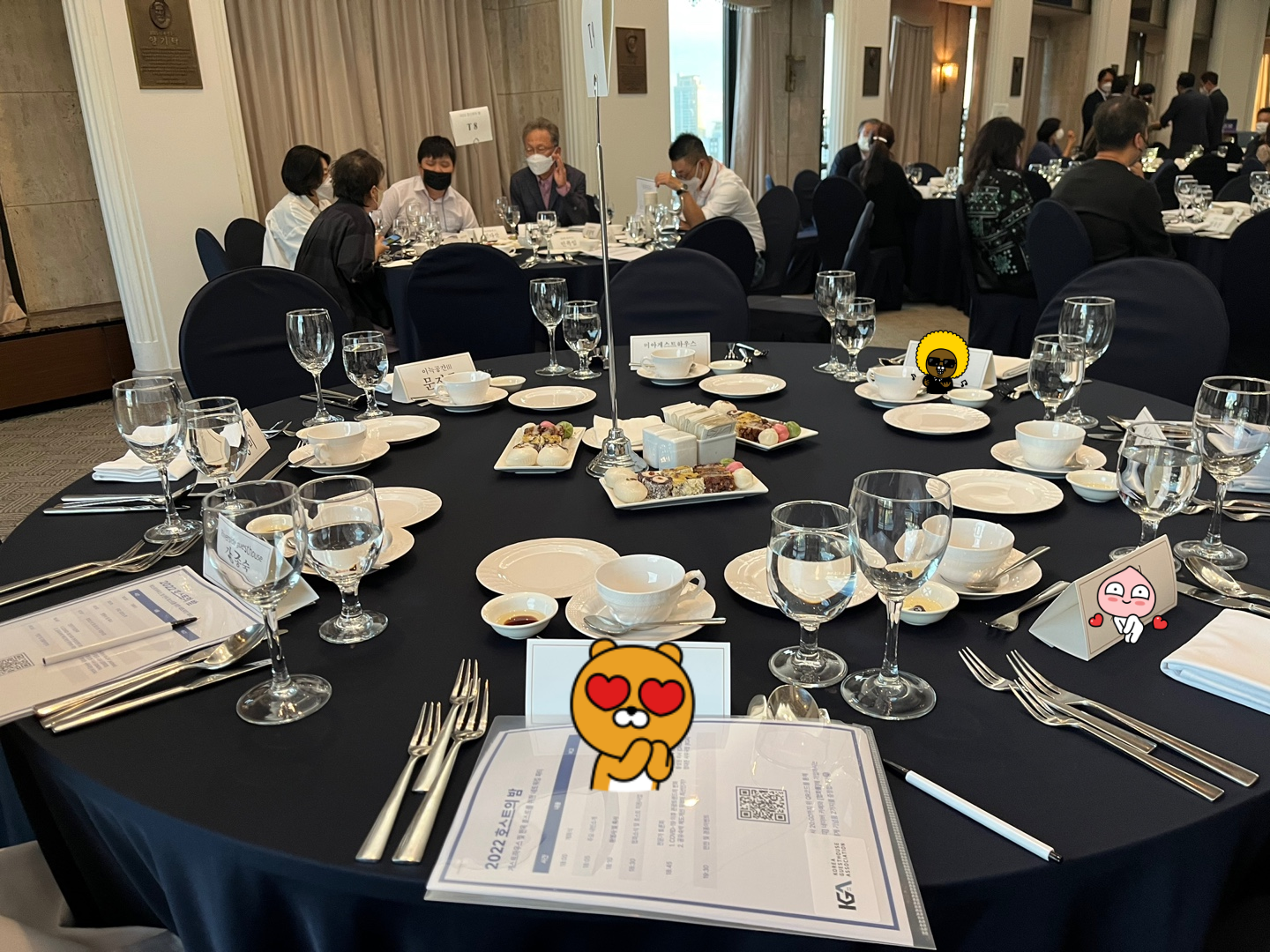 행사시작은 원래 6시에 시작될 예정이었는데, 조금 늦게 시작되었고 만찬 전 순서들이 길어져서 테이블에 있었던 웰컴떡을 제가 거의 한그릇 다 먹었네요. ㅎㅎ 8시쯤부터 만찬이 시작되서 빵, 애피타이저(관자랑 새우?), 스프, 메인요리(스테이크와 새우 구운 거)가 나왔어요. 매우 맛있었는데, 다 먹고도 전혀 배가 차지 않은 건 저뿐이었을까요? 🤣🤣🤣 그래도 좋은 행사 감사드리고, 다른 지역에서 호스트의 밤 행사가 있을 때, 관광사업등록증 있으신 분들은 적극 참여하시길 추천드립니다!! 디퓨저랑 타올도 선물로 주고, 팀별 활동도 있었는데 제가 저희 테이블에서 팀장도 되었고, 사회자와의 가위바위보 게임에서도 운좋게 마지막으로 남은 사람이 되어서 KGA몰 상품권을 13만원어치나 받았어요. 매우 혜자인 행사이고, 호스트분들과의 만남도 좋았구요. 1년차 호스트 하면서 더 나아가지 못하는 부분이 있었다고 생각했는데, 도움이 많이 되었습니다!