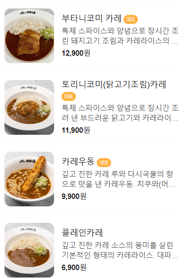 모든 메뉴에 들어가는 카레는 같고 토핑만 달라지는 거 같았는데요.