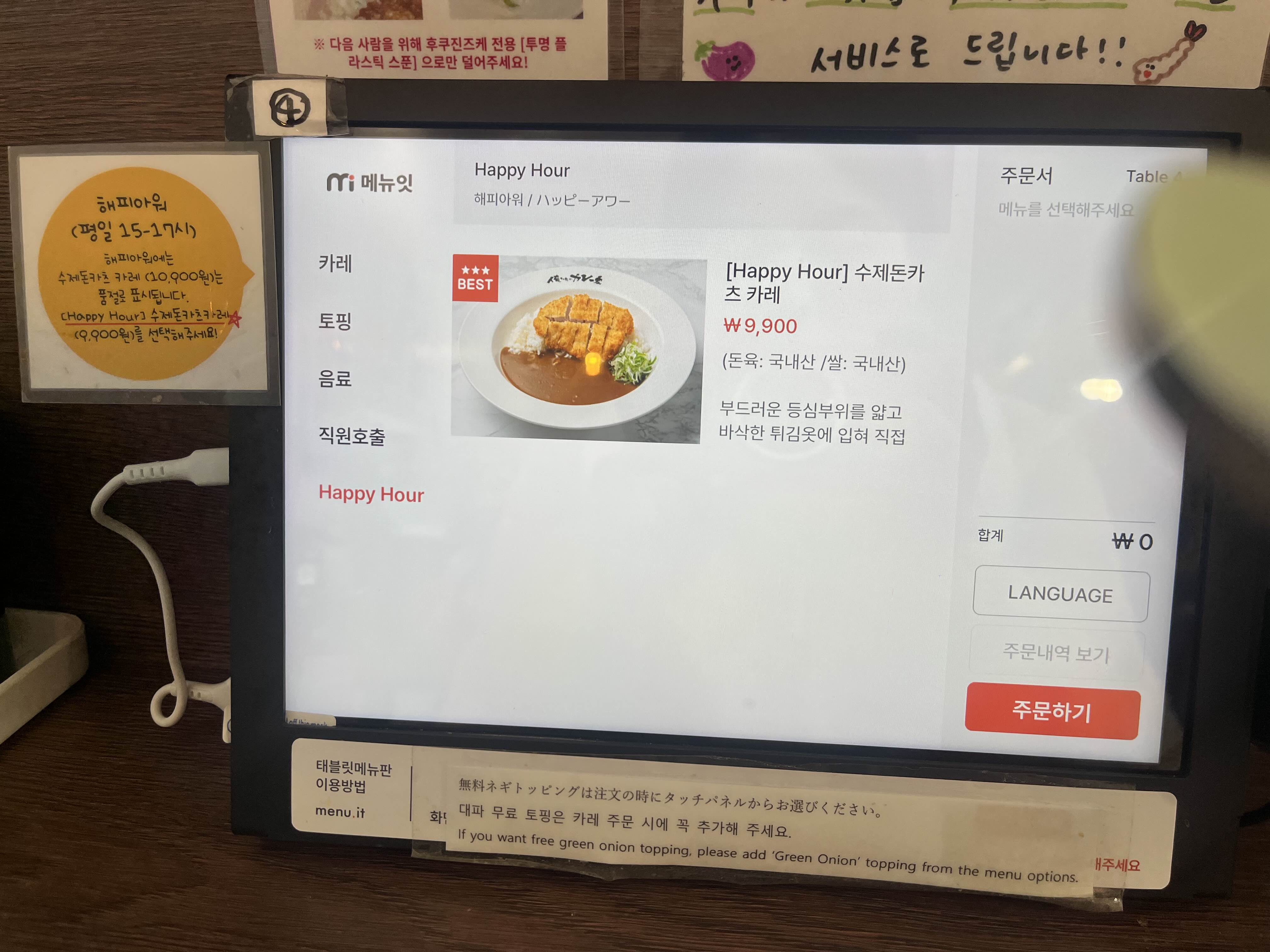 그리고 저는 해피아워 수제돈카츠카레를 다시 주문하여 결제했어요.