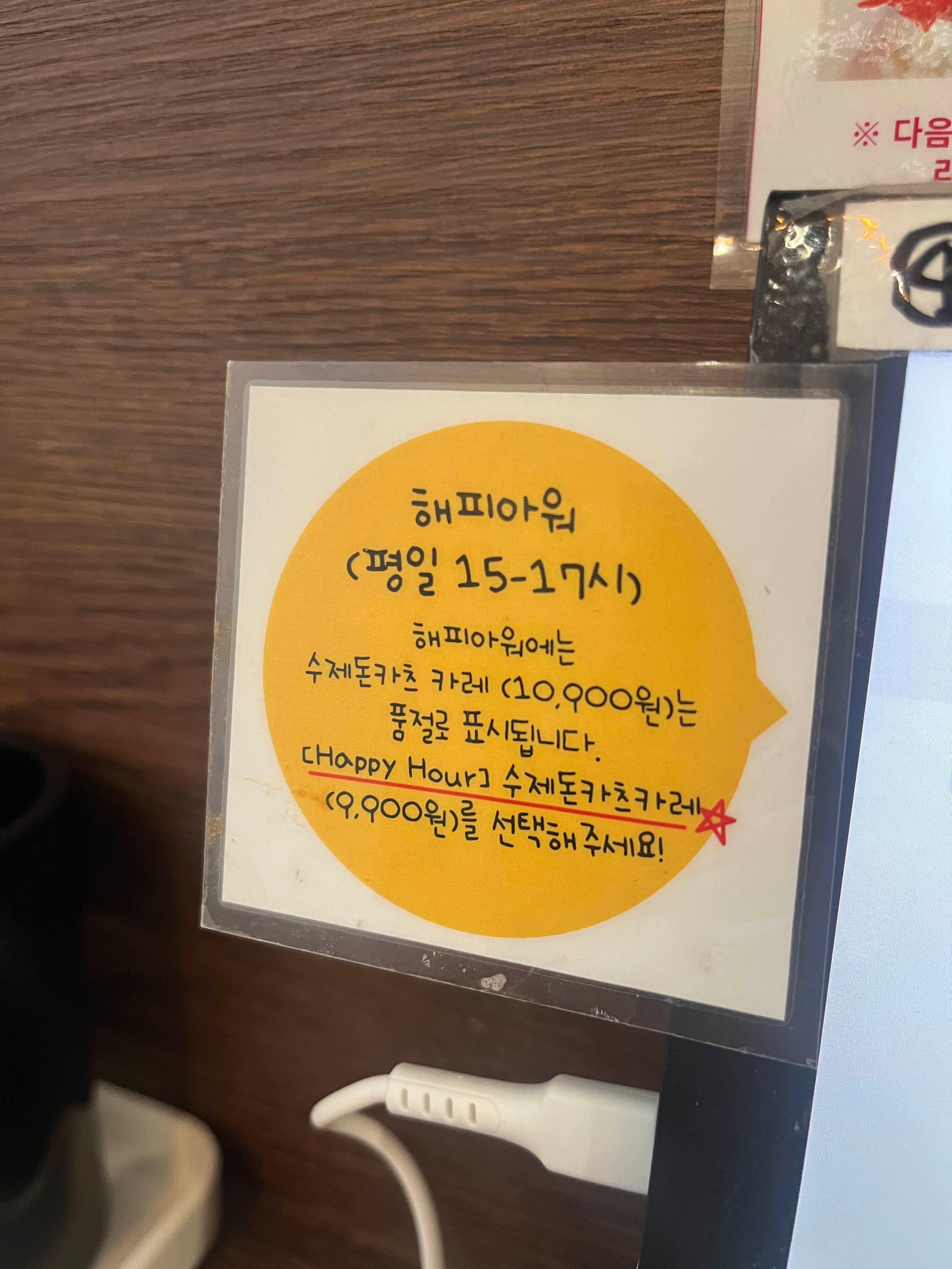 해피아워 평일 15-17시 사이에는 수제돈카츠카레가 9,900원?!