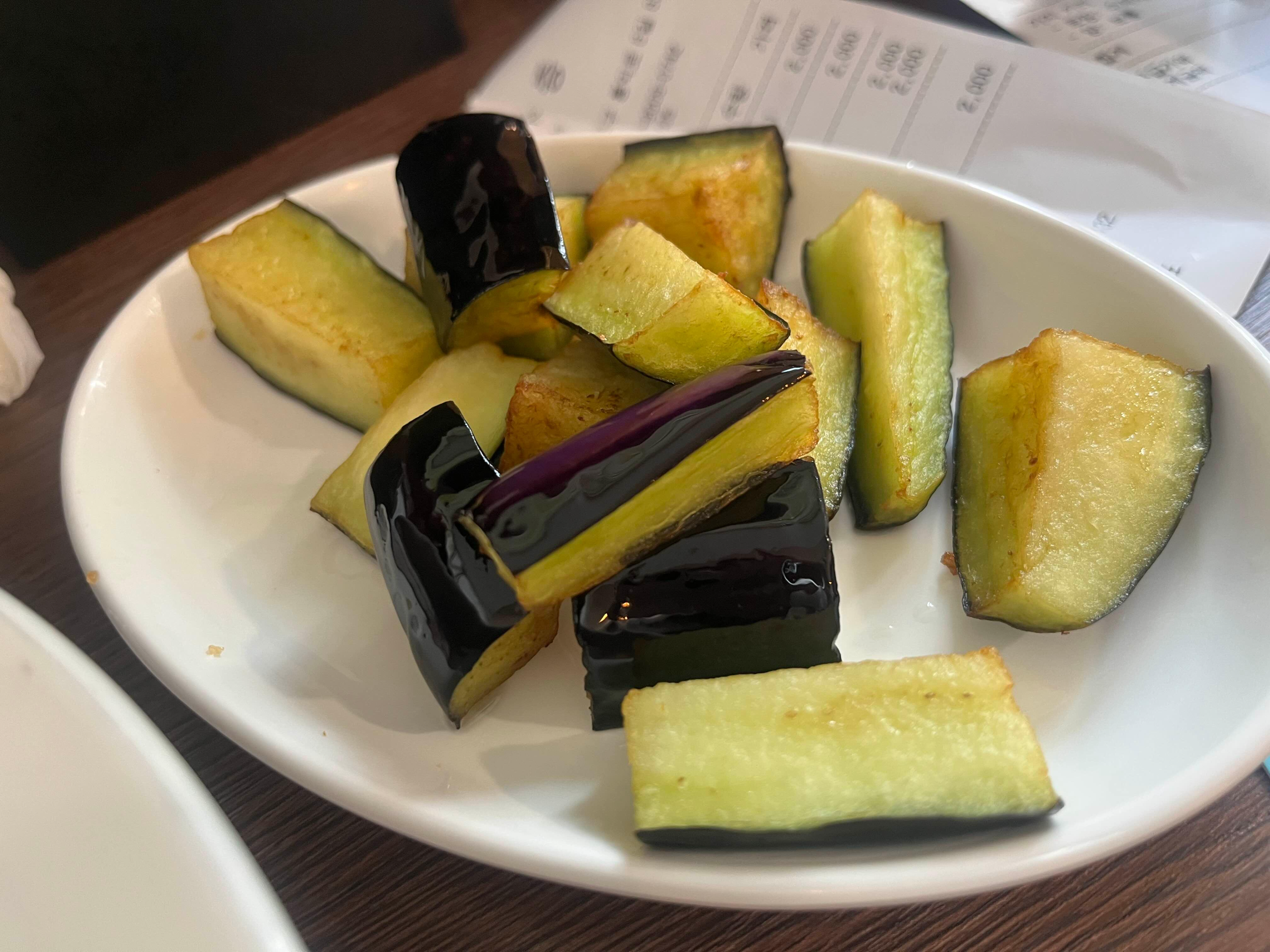 생각보다 양을 많이 주셔서 놀랐네요. 가지를 살짝 튀긴 거 같은데,