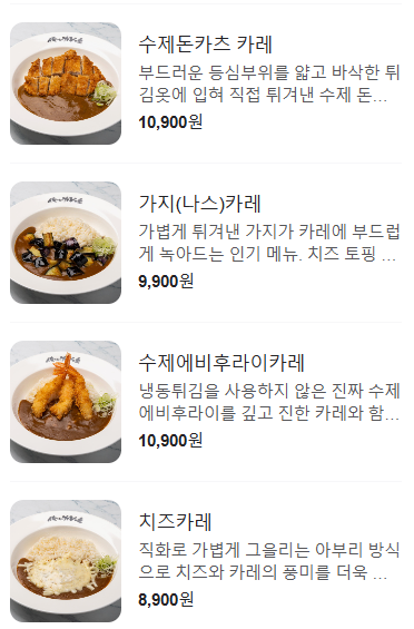 모든 메뉴에 들어가는 카레는 같고 토핑만 달라지는 거 같았는데요.