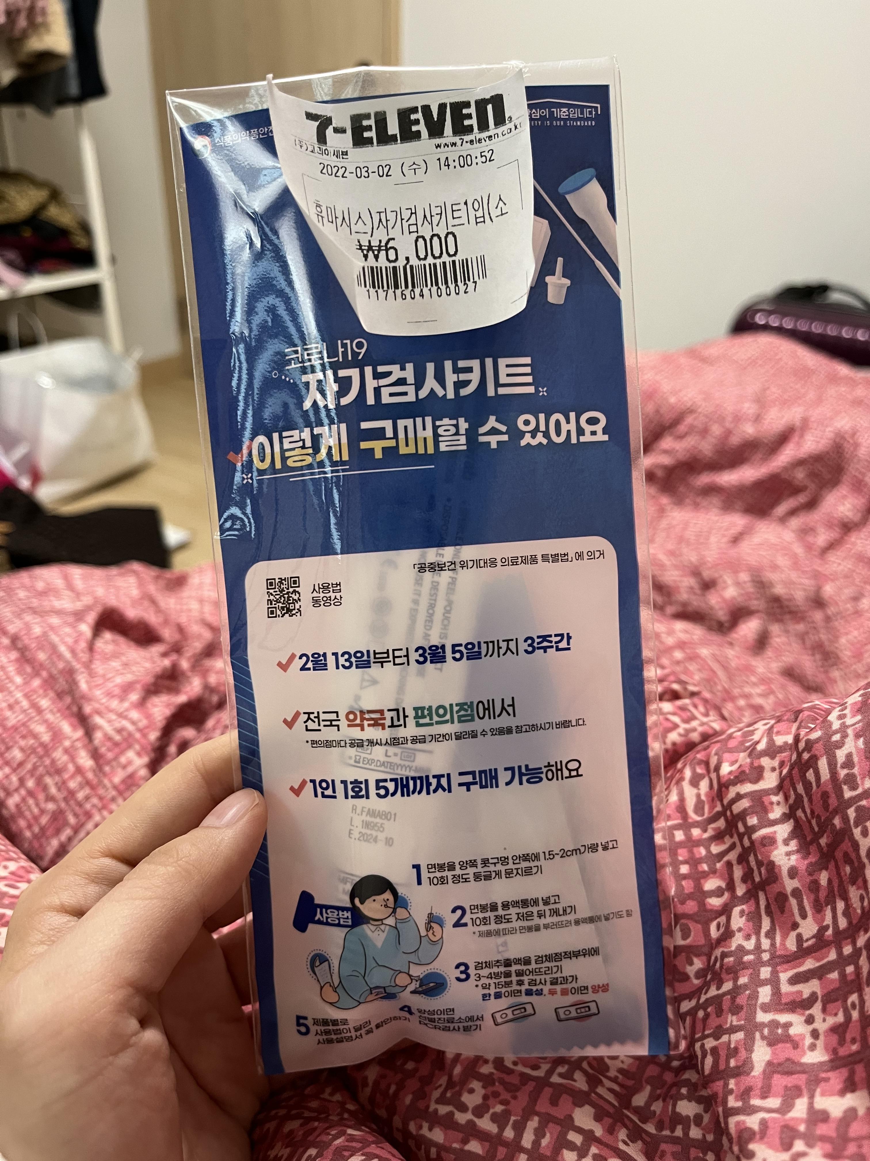 자가검사키트는 약국이나 편의점에서 5000~6000원에 구매할 수 있어요. 여기서 양성이 나오면 보건소에서 PCR검사를 무료로 받을 수 있습니다. 양성이 나오면 그대로 포장지에 다시 넣어서 붉은선이 두줄 나온 걸 보건소에서 보여줘야 하고, 그후엔 보건소의 폐기물쓰레기통에 버리셔야 해요! 제가 샀던 자가검사키트에는 사용법이 자세히 나와있지 않았어서 좀 헤맸어요. 그래서 위에 사용법을 첨부합니다.
