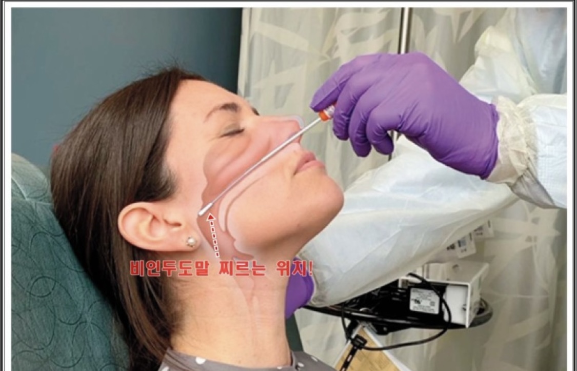 보통 면봉을 코에 넣으라고 하면 위쪽으로 넣는다고 생각하실텐데(저만 그랬나요?🙄), 위 사진을 보면 알 수 있듯이 가로로(수직으로?) 넣는 게 맞더라구요. 위쪽으로 넣어보시면 아시겠지만 신경?을 건드리게 되서 자꾸 재채기가 나오고 간질간질하고 그래요. 근데 수직으로 구멍을 잘 찾아서 조절해서 넣어 보시면 아프지 않게 깊숙히 넣으실 수 있어요! 저도 이 방법으로 면봉을 코 양쪽에 한 번씩 넣었다 뺀 뒤 검사를 해보니 양성이 나왔습니다. 오늘 보건소에 PCR검사를 다녀왔는데, 거기서도 같은 방법으로 면봉을 넣더라고요.