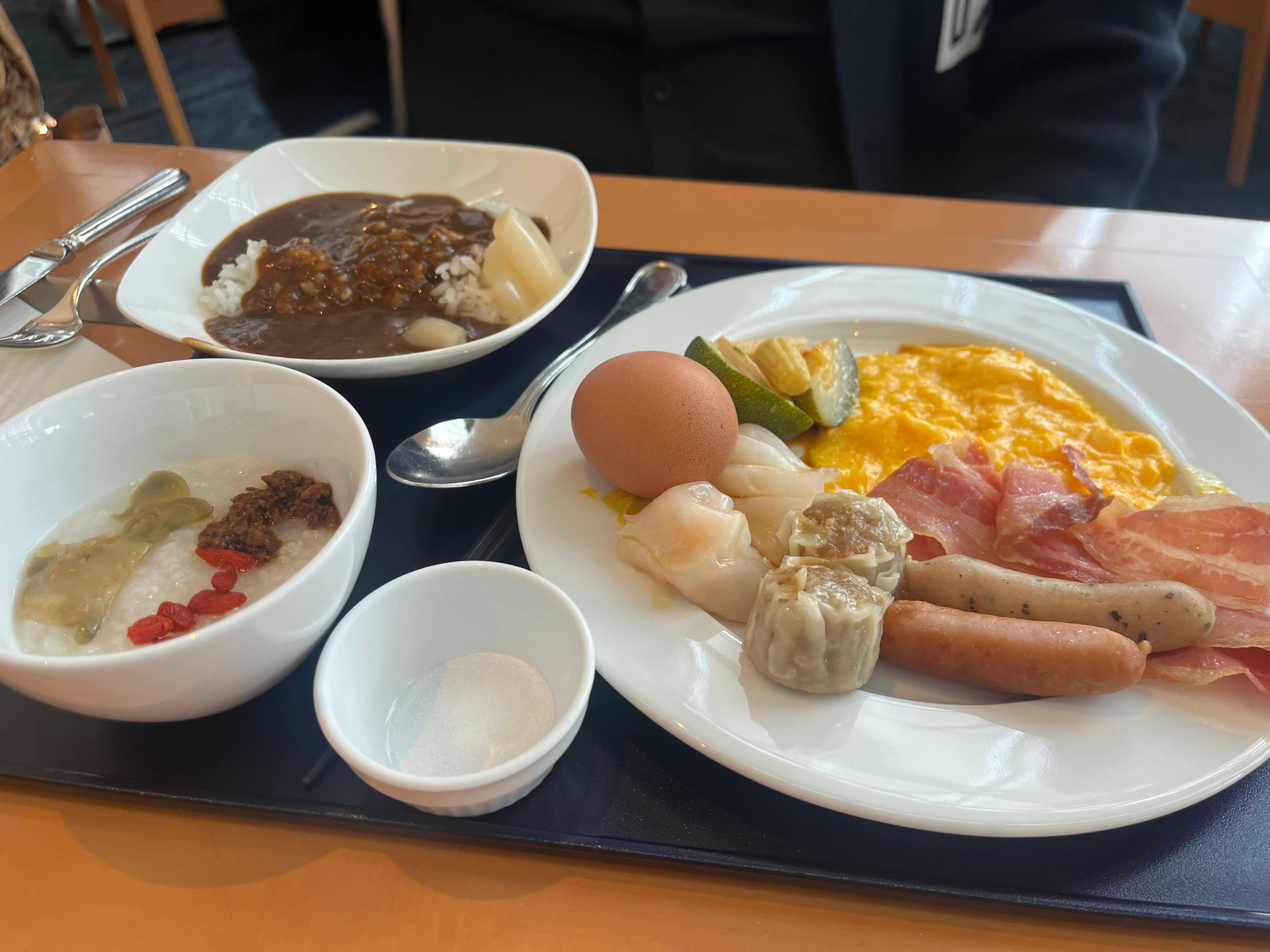 우리가 흔히 조식에서 볼 수 있는 샐러드코너, 씨리얼, 즉석오믈렛, 일식 반찬과 생선구이, 커리와 죽, 디저트 등이 있었어요.