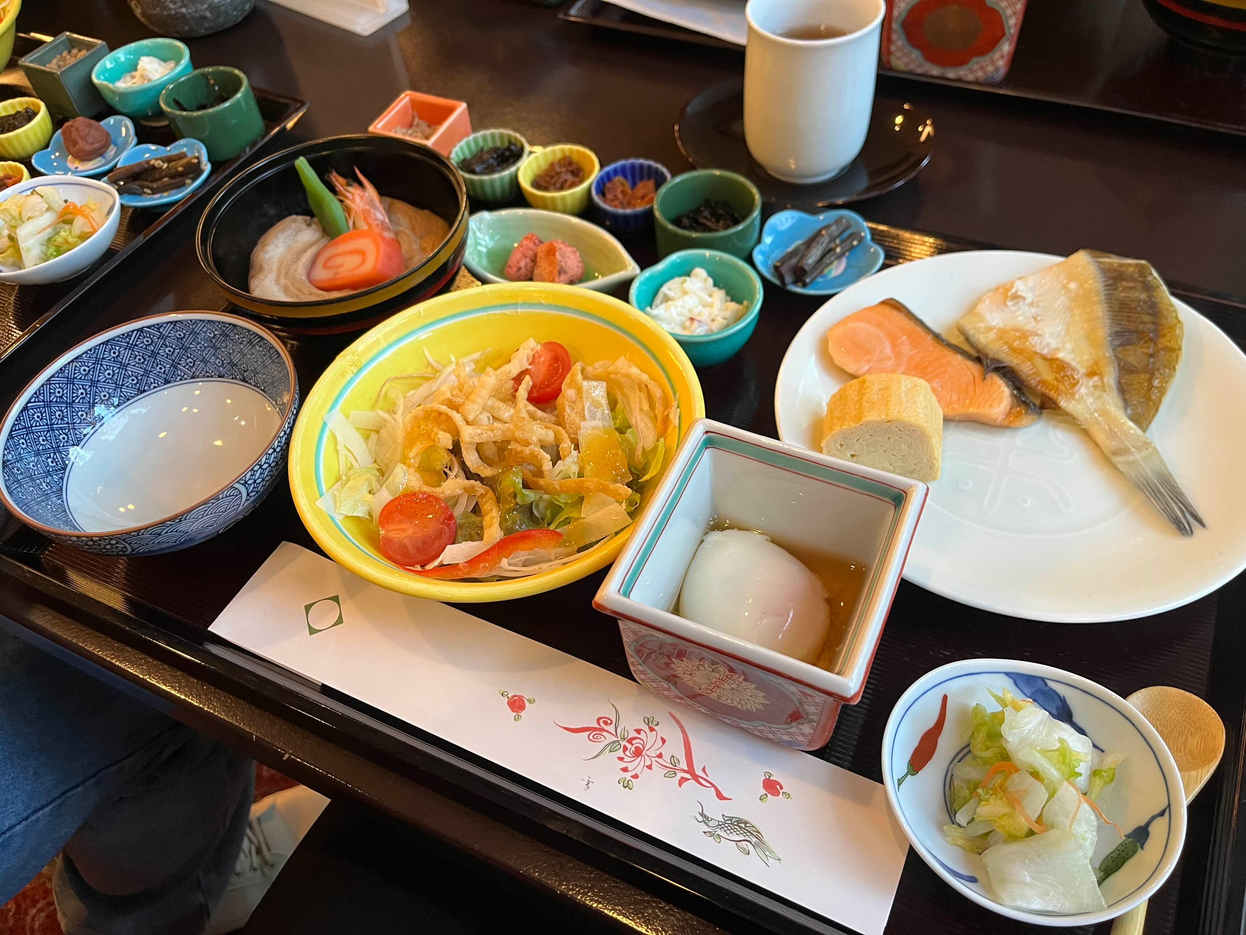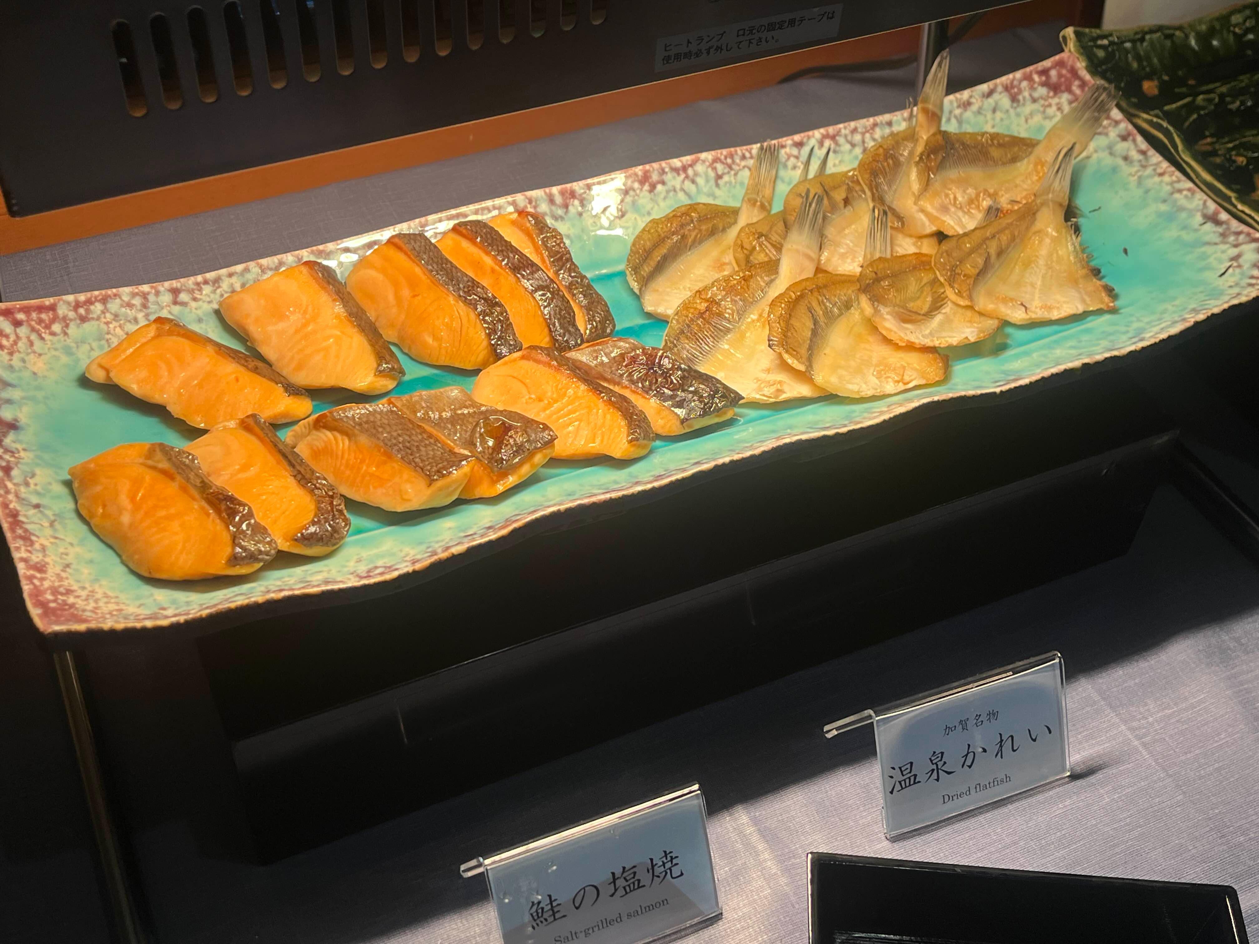 카가현 명물 온천 가자미 외 계절 생선구이(연어 나옴!), 계란요리(계란말이와 온센다마고;수란),