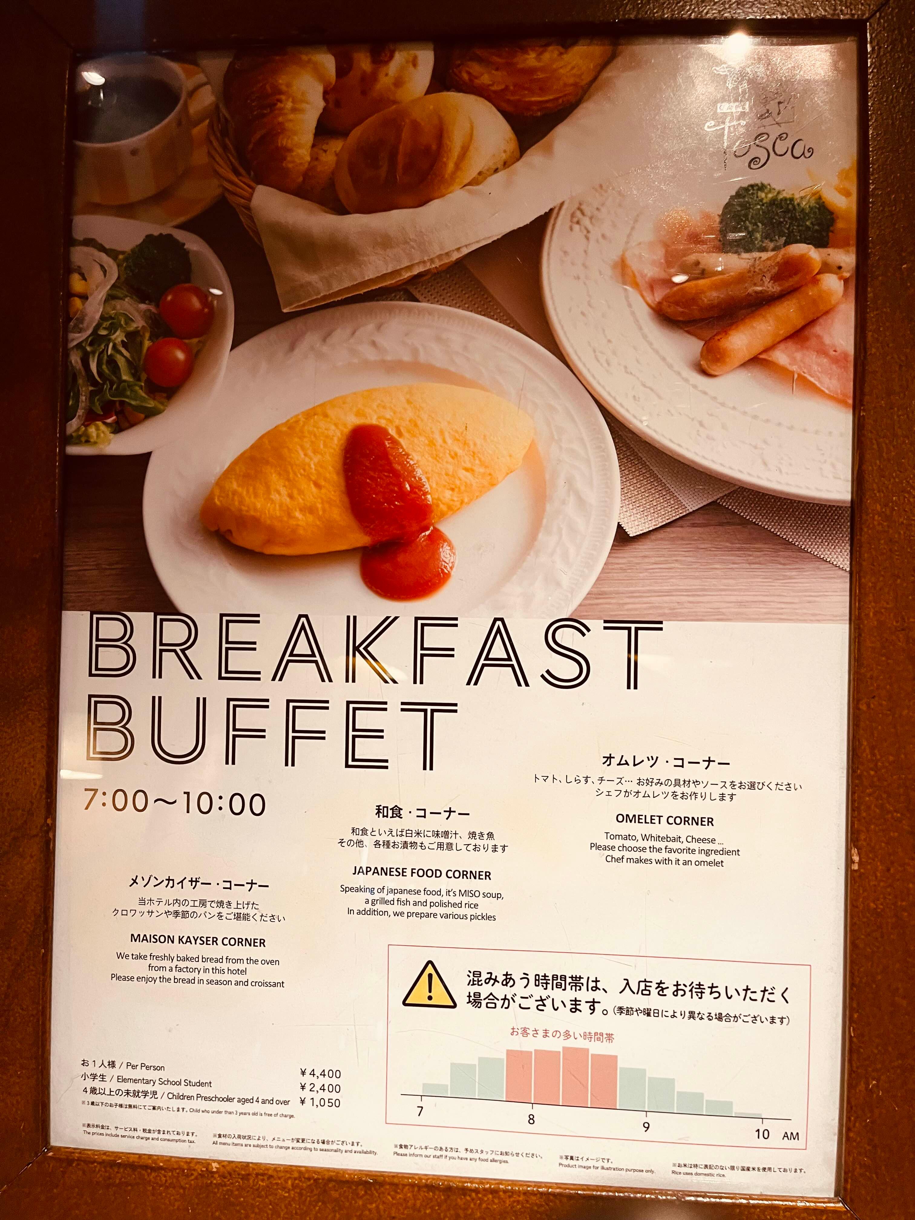조식은 자그마치 1인 4,400엔으로 제가 가본 일본 호텔 조식 중에서는 가장 비쌌는데요.