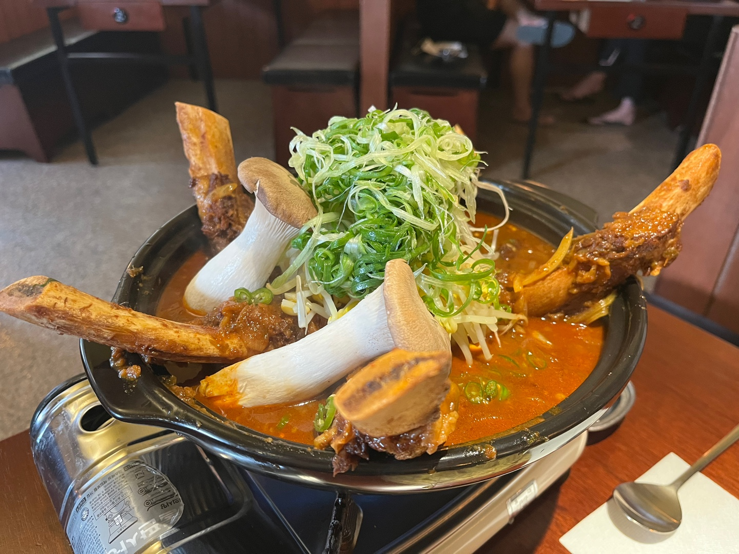 처음에 나왔을 때는 생각보다 뼈에 달려 있는 고기가 얼마 없는데..?? 라고 생각했는데, 막상 먹다보니 둘이서 먹기에 양은 충분한 정도였습니다. 고기를 다 먹은 후에 우동을 추가하거나 볶음밥을 시키면 별미라고 메뉴판에 써있었는데, 그렇게 먹는다면 3인까지는 먹을 수 있는 양일 것 같습니다. 둘이 먹기엔 조금 많고 셋이 먹기엔 조금 모자란 정도의 고기양!