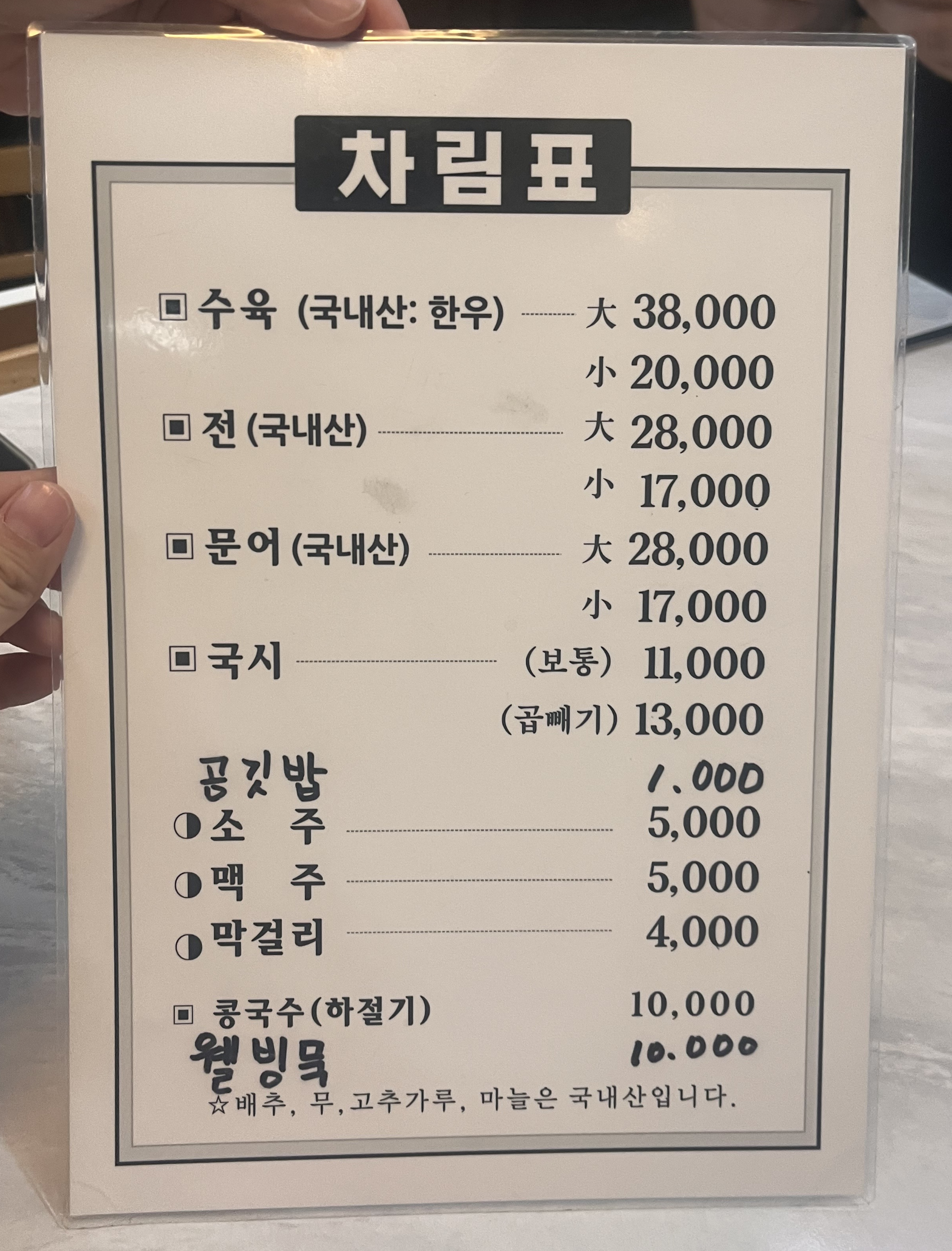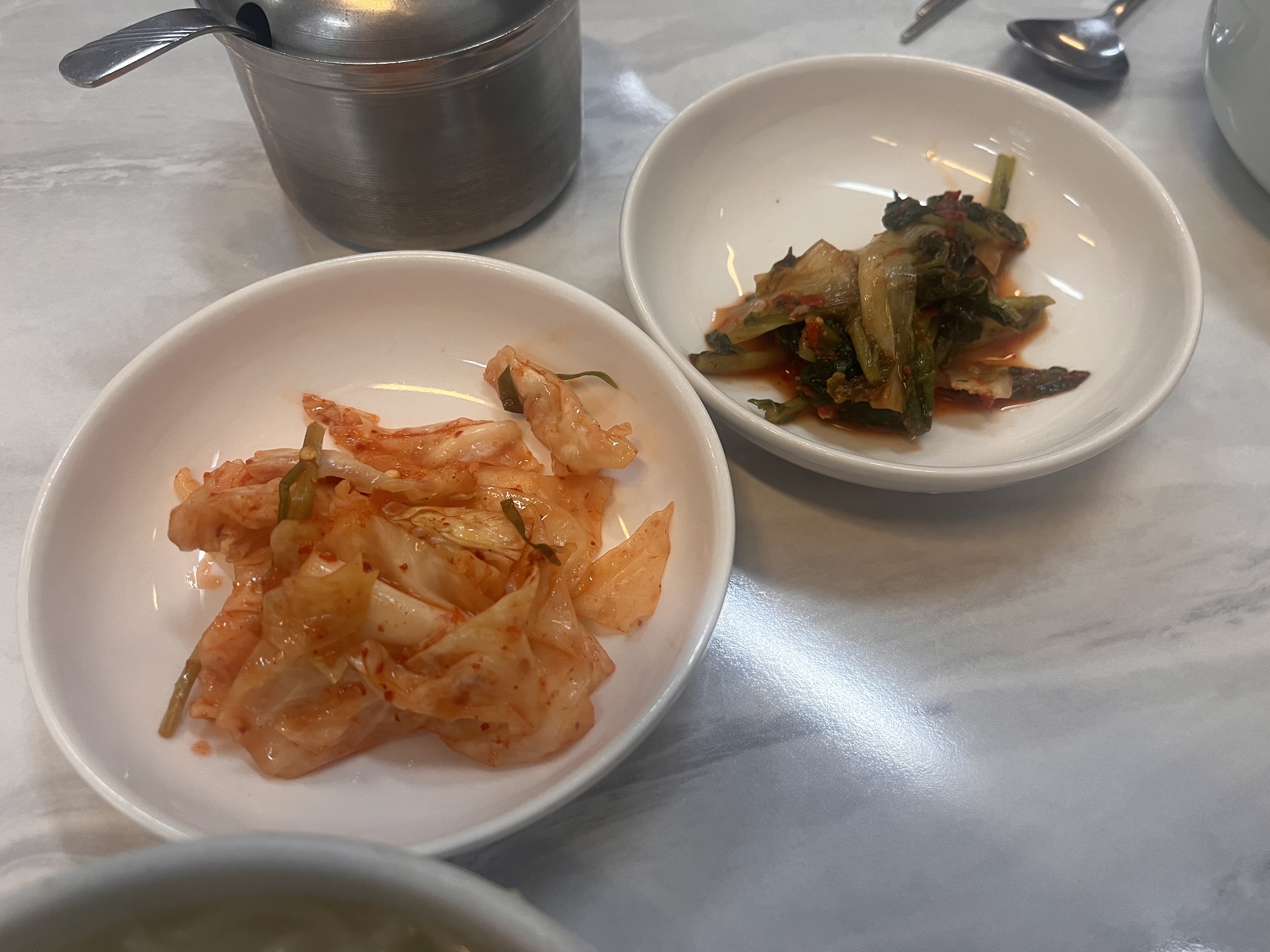 고깃국물에 나오는 국수니까 고기국수 같은 거겠죠? 그래서인지 수육을 같이 팔더라구요. 수육이 정말 맛있다고 추천해주셨는데 배가 많이 고프진 않았어서 국시 보통으로 주문했습니다. 가격은 국수치고는 꽤 비싼 11,000원😢 밑반찬으로는 양배추김치와 열무김치가 나왔어요. 다대기도 함께 나오구요.