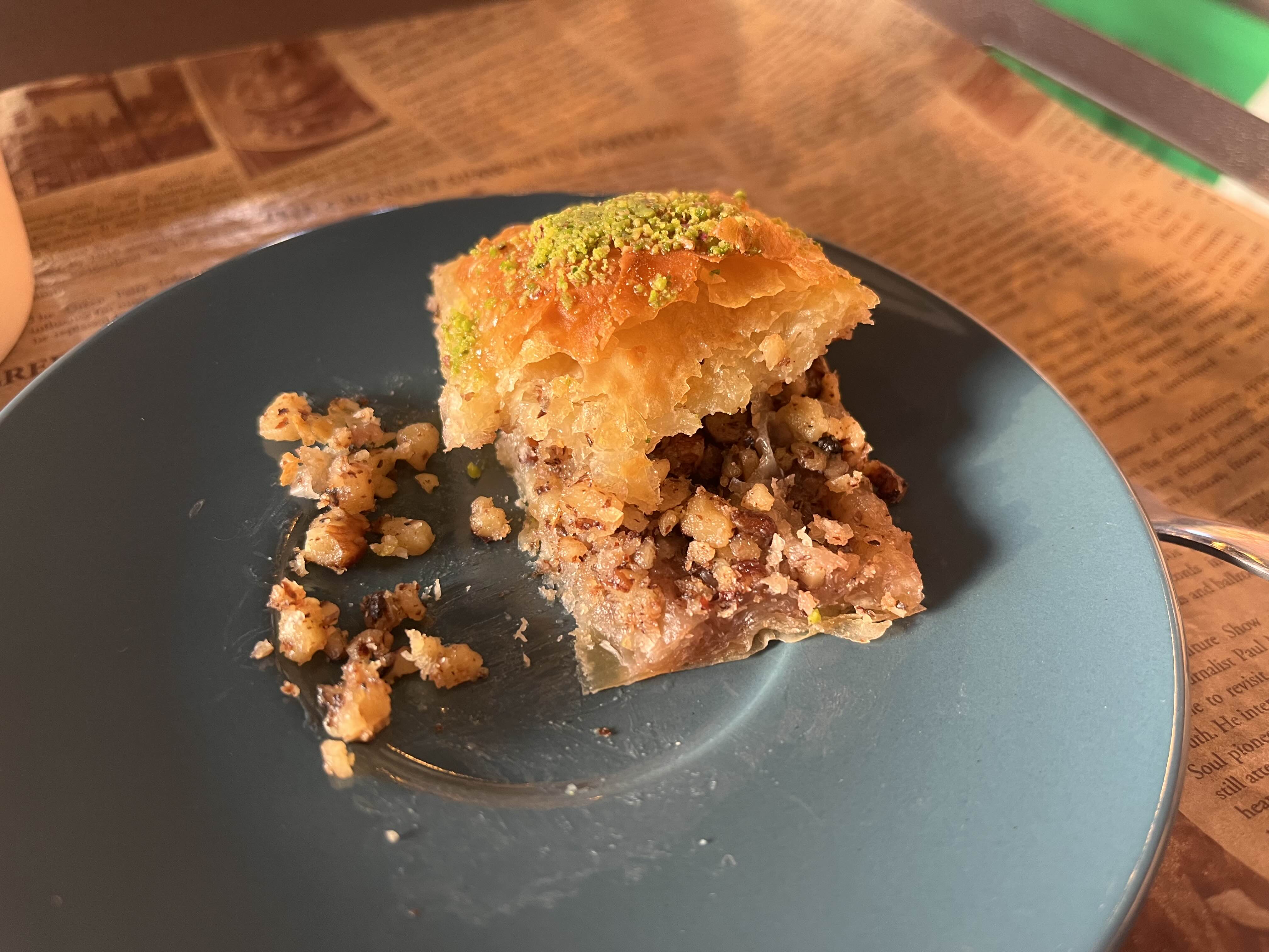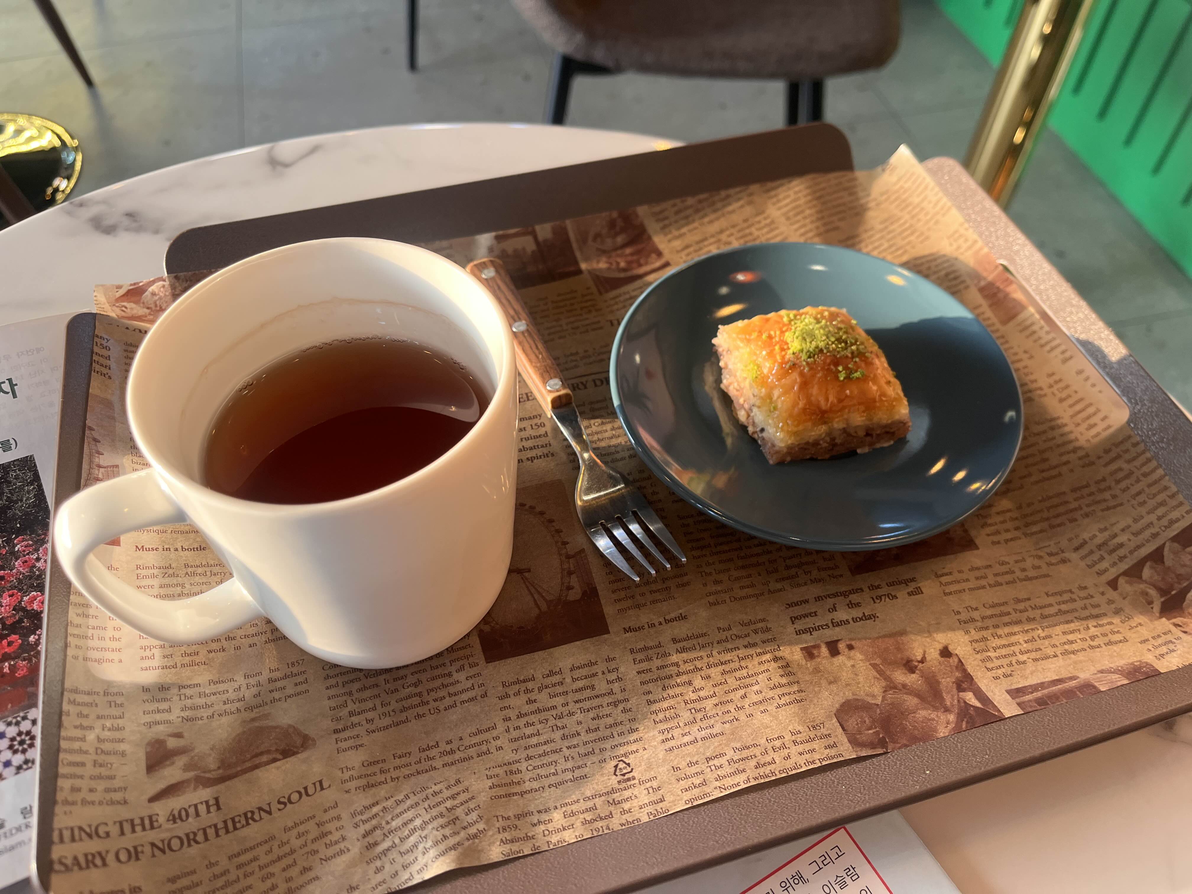 근데 그래서인지 홍차랑 참 잘 어울렸어요! 식감도 재밌고 다음에 또 바클라바 파는 곳이 있으면 사먹을 거 같아요.