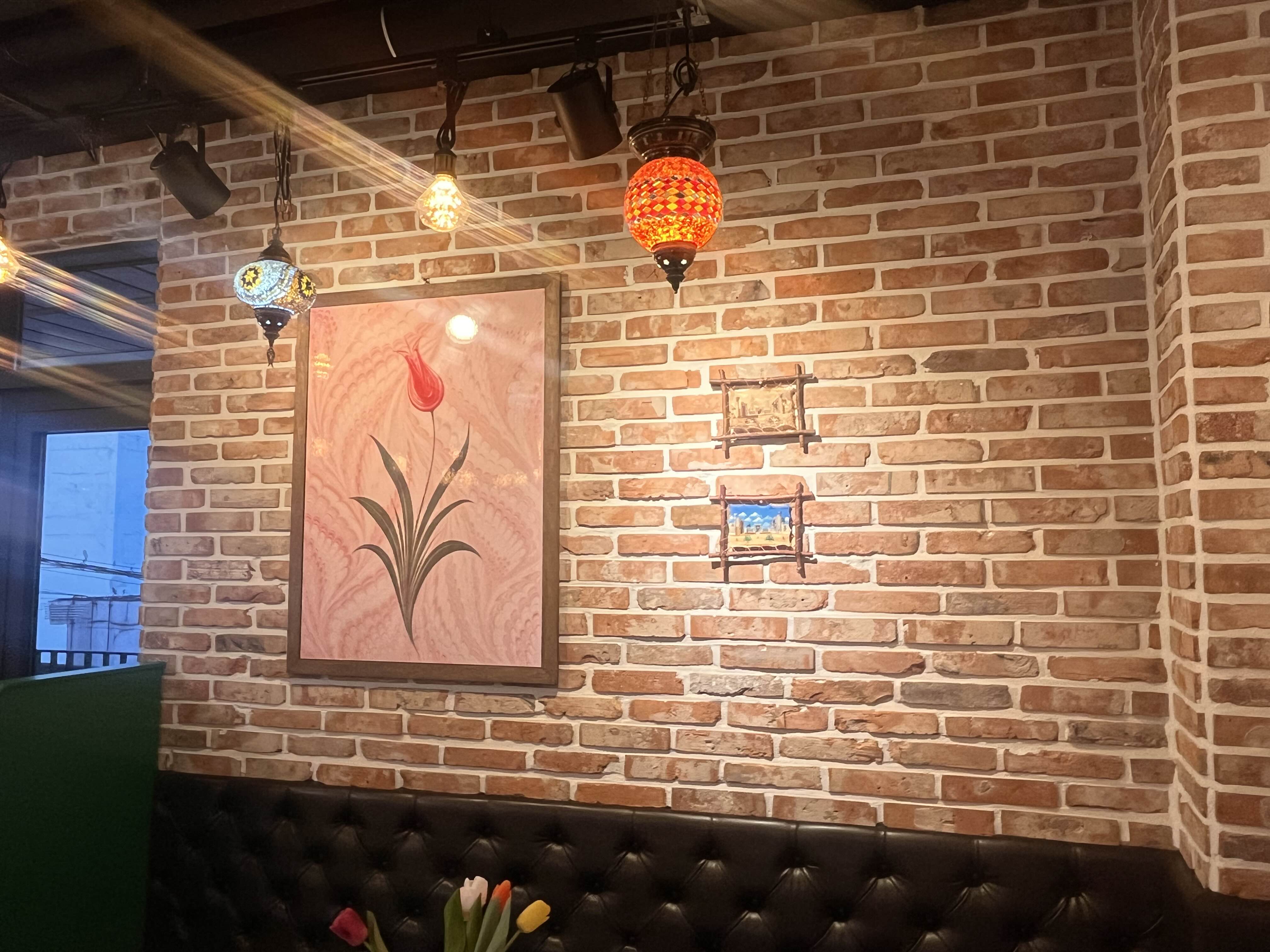 햇볕이 들어오고 터키식조명과 함께 벽돌인테리어가 참 이쁘더라구요😍