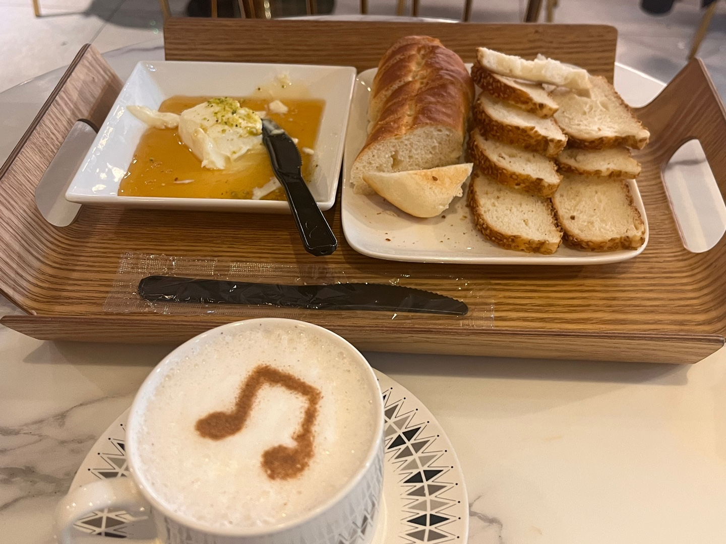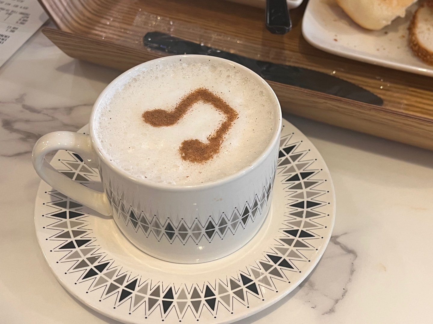 근데, 이런 라떼 느낌의 차가 나왔어요! 폭신한 우유거품 위에 시나몬 가루로 음표 모양을 만들어서 생김새도 귀엽더라구요. 라떼라고 써있지 않은데, 맑은 티가 아니라 라떼가 나와서 잘못 나왔나 싶었지만 직원에게 물어보니 맞다고 해서 그렇게 살렙과의 첫 만남..! 검색해보니까 살렙은 터키의 겨울 대표 음료래요. 살렙은 난초인데, 난초의 뿌리로 만든 전분가루가 들어간건가봐요. 터키아이스크림의 쫀득한 식감도, 이 살렙 뿌리의 전분이 들어가서 그런거라고 하더라구요~