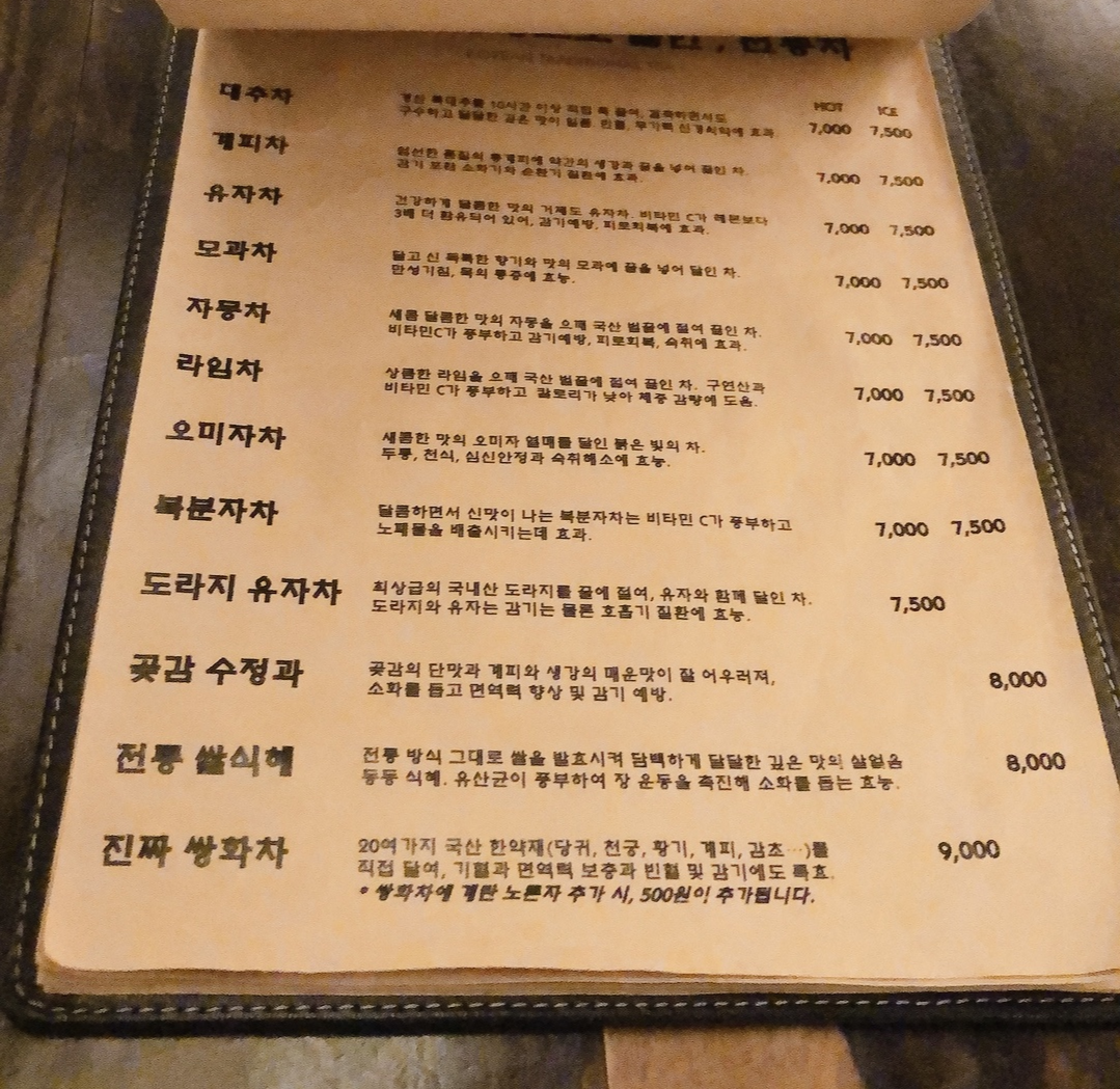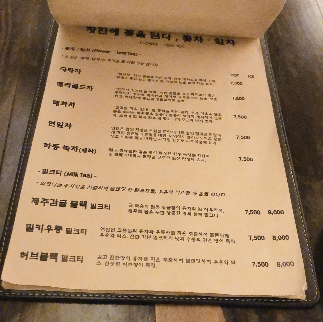 메뉴판 보시면 그 차의 맛이나 효능이 자세하게 설명되어 있어서,