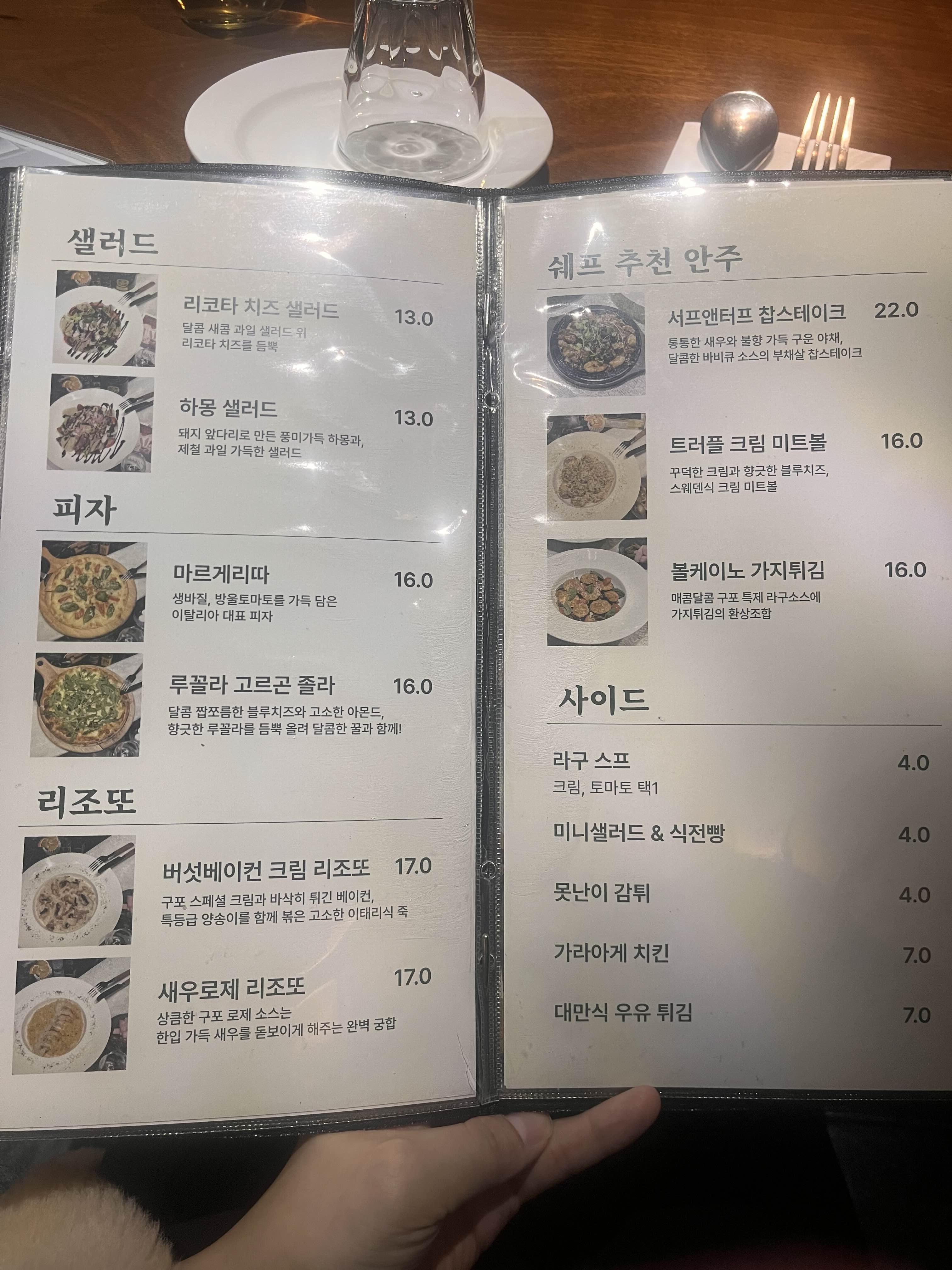 저는 어느 식당에 가나 항상 추천 메뉴를 물어보는데요. "다 맛있어요."라는 성의 없는 답변이나 "크림 좋아하시면 이거, 토마토 좋아하시면 이거"식의 간단한 답변은 좋아하지 않아요. 뭔가 추천하는 사람이 자부심 있게 추천하는 메뉴가 있는 집이 좋더라구요.