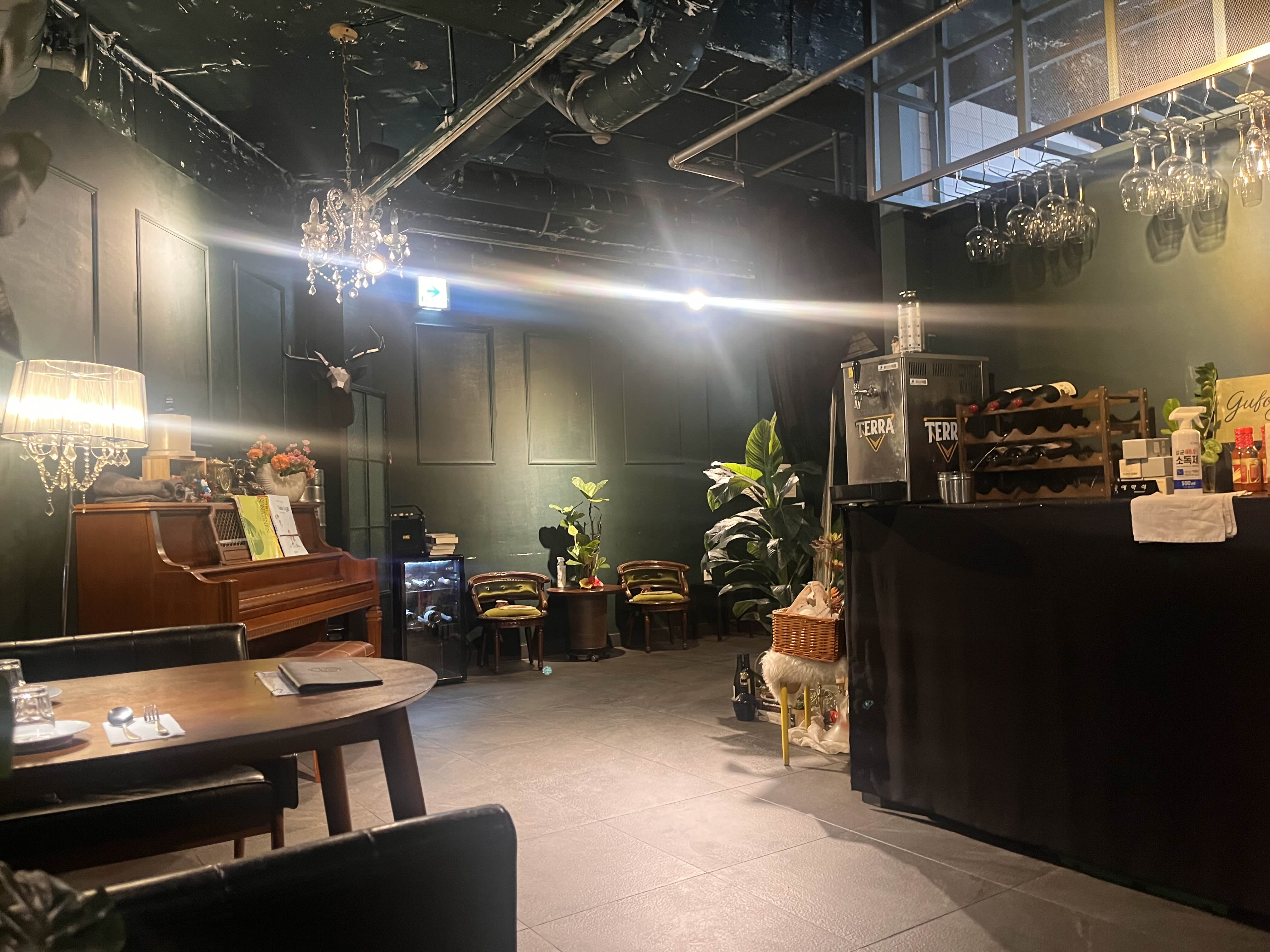 지하 1층이라서 뭔가 환기가 잘 안 될 거 같고, 냄새가 날 수도 있을 거 같다고(경험에 의한 합리적 의심ㅋㅋ) 생각했던 것과는 달리 굉장히 앤틱하고 빈티지스러워서 말그대로 이탈리안 레스토랑이라고 할 수 있는 분위기였어요. 요즘 파스타전문점들이 체인점들이 많고, 대부분이 밝은 분위기라서 그런지 여기가 유니크한 느낌이 들더라구요. 냄새도 전혀 안 나고 화장실도 깨끗하게 관리되고 있었고 실내가 전체적으로 식물들과 조명이 잘 어우러져서 아늑한 느낌이 들었어요. 이번엔 혼자 갔지만 다음엔 남자친구랑 오고 싶더라구요 ㅎㅎ