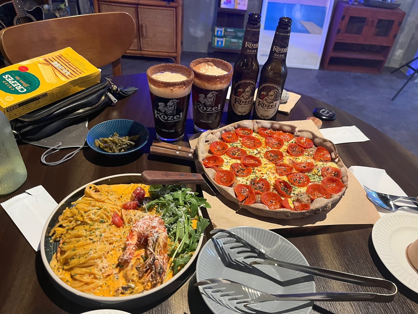 여기는 와인과 맥주 메뉴도 꽤 많았는데, 친구가 엄청 강력하게 추천한 "코젤다크"라는 흑맥주를 시키기로 했습니다. 도수가 3.8도였나. 도수가 낮아서 술 잘 못하는 사람들도 가볍게 마실 수 있다는 장점!!!