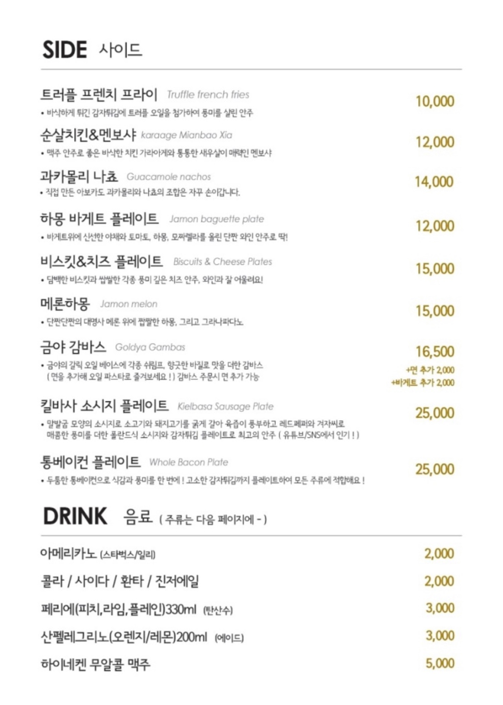 코젤 다크 맥주는 위 사진을 보시면 아시겠지만 흑맥주인데, 입이 닿는 잔 윗부분에 시나몬가루를 뿌려놔서 마실 때마다 잔을 돌려가며 시나몬가루와 함께 맥주를 마시는 게 특징인데, 다른 흑맥주들보다 스모키함이 덜해서 평소에 흑맥주를 좋아하지 않는 저도 맛있게 먹었어요! 다른 곳에서는 생맥주 위에 생크림을 올려주기도 한다는데, 친구가 엄청 추천하는 걸 보니 저도 다음엔 그렇게도 꼭 먹어보고 싶어요!!