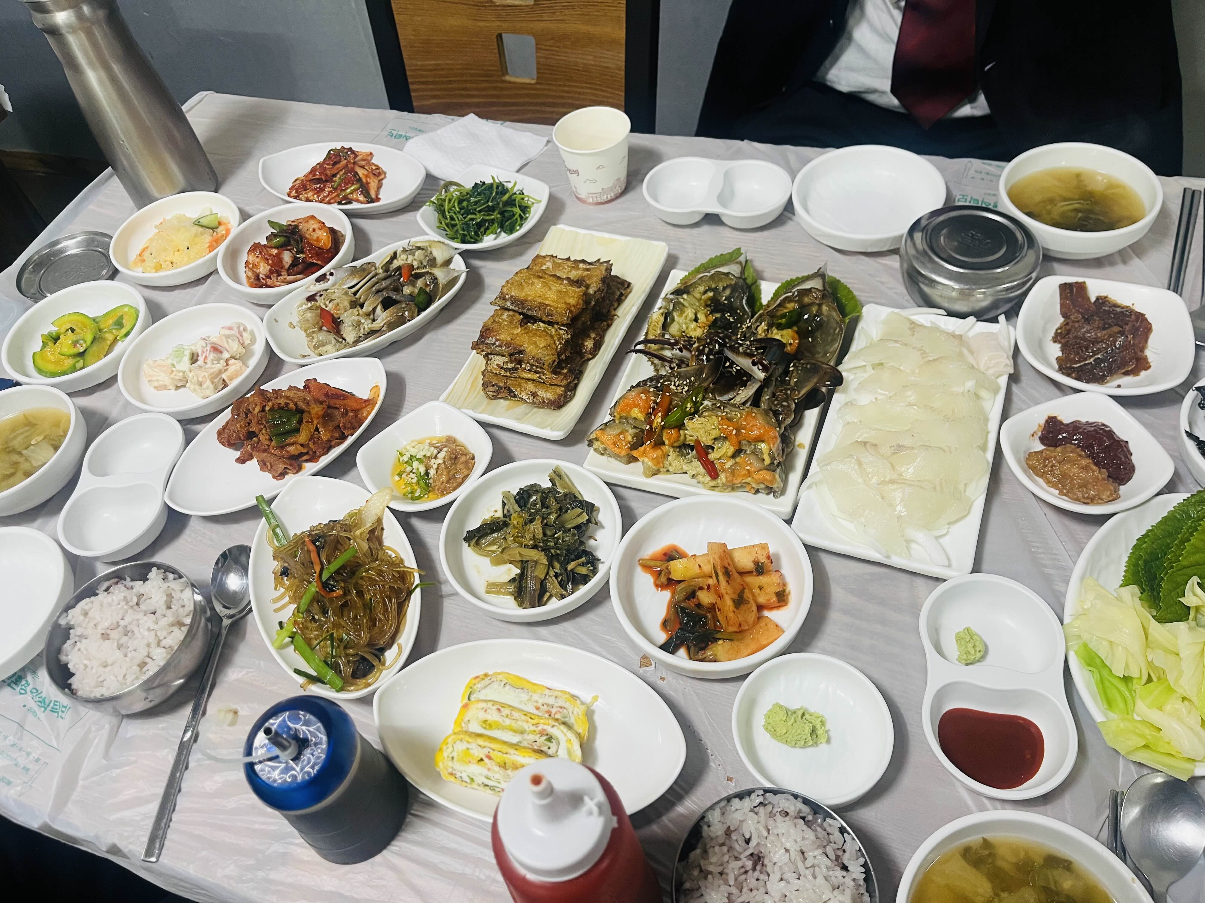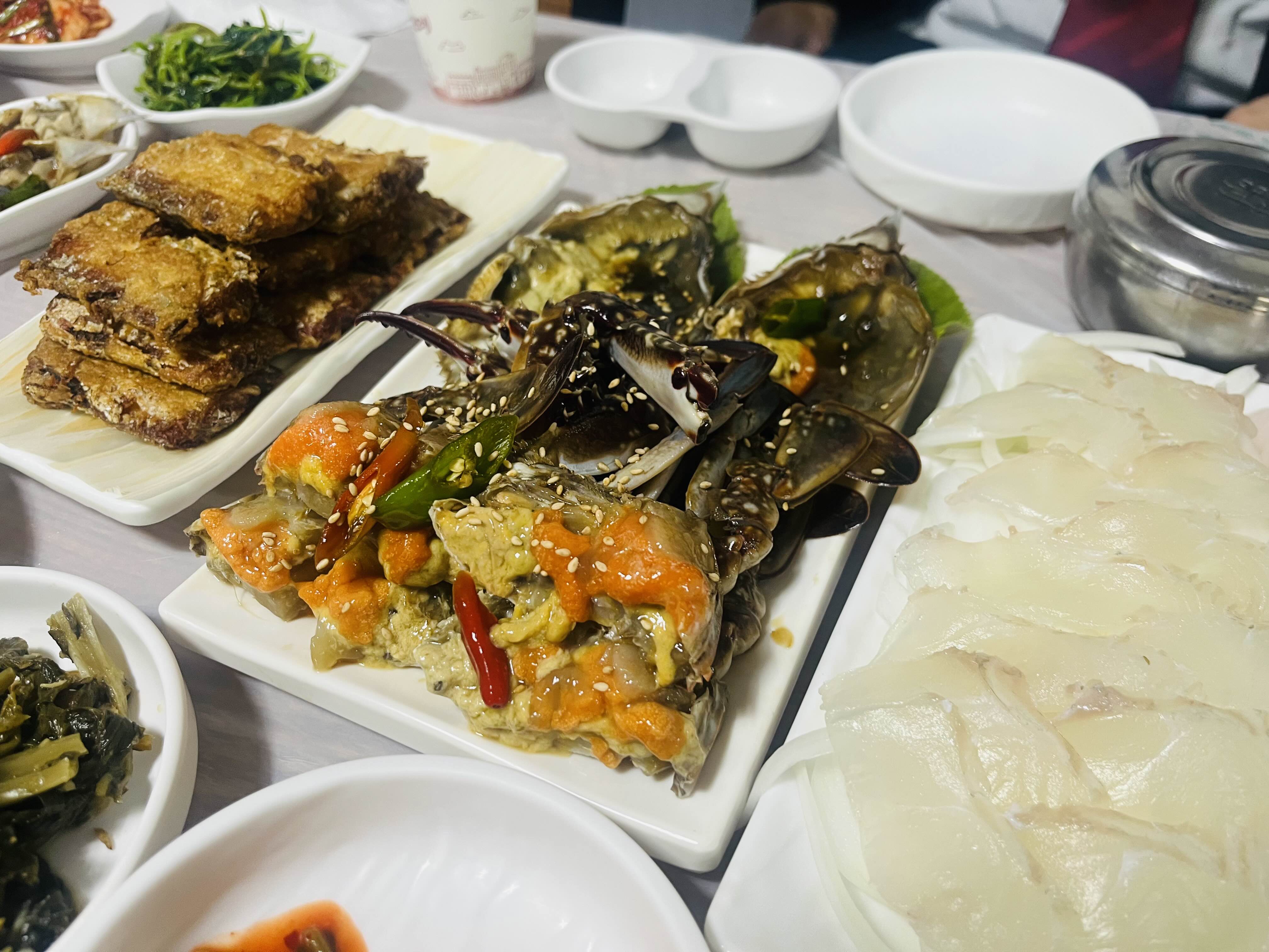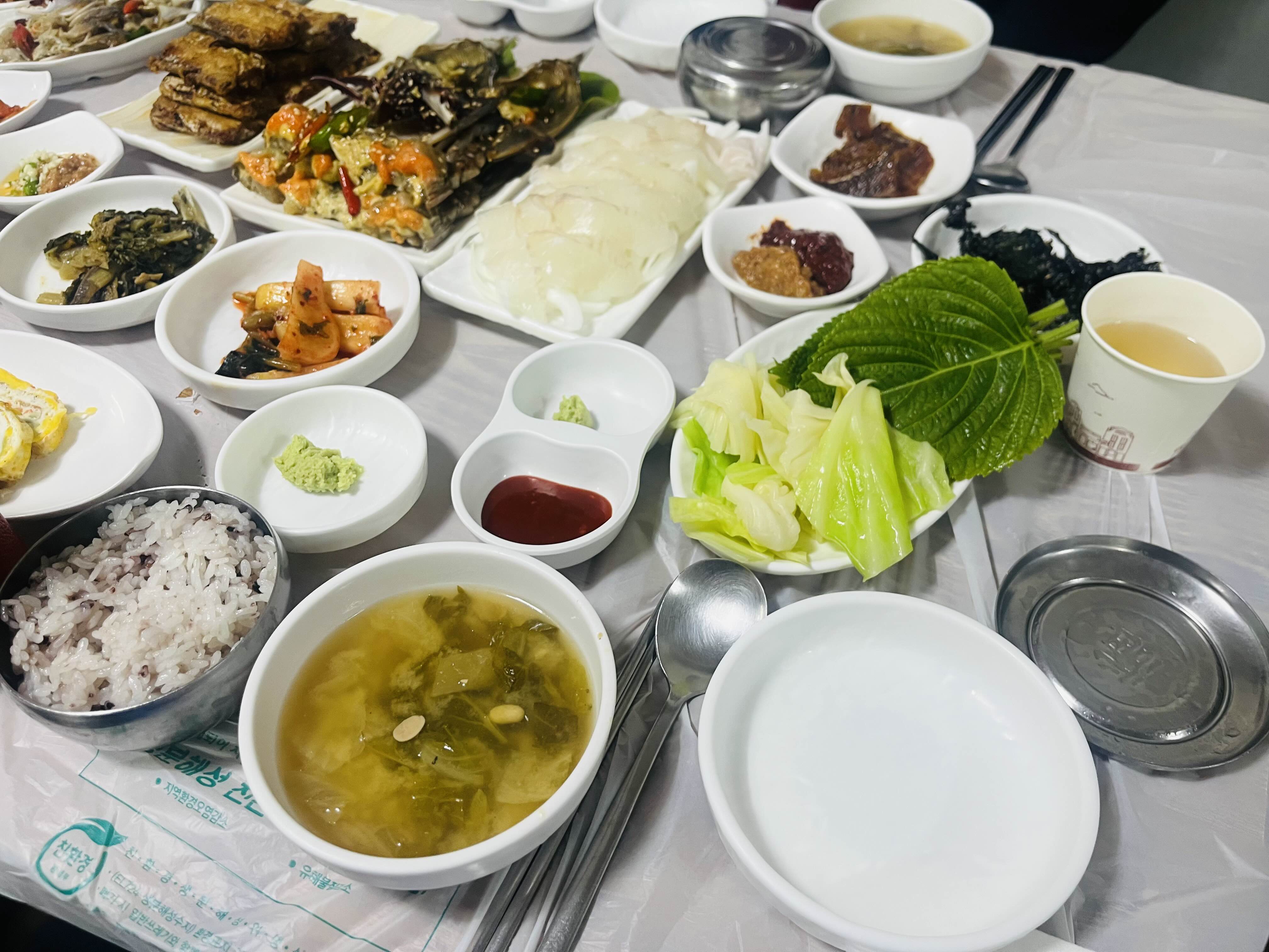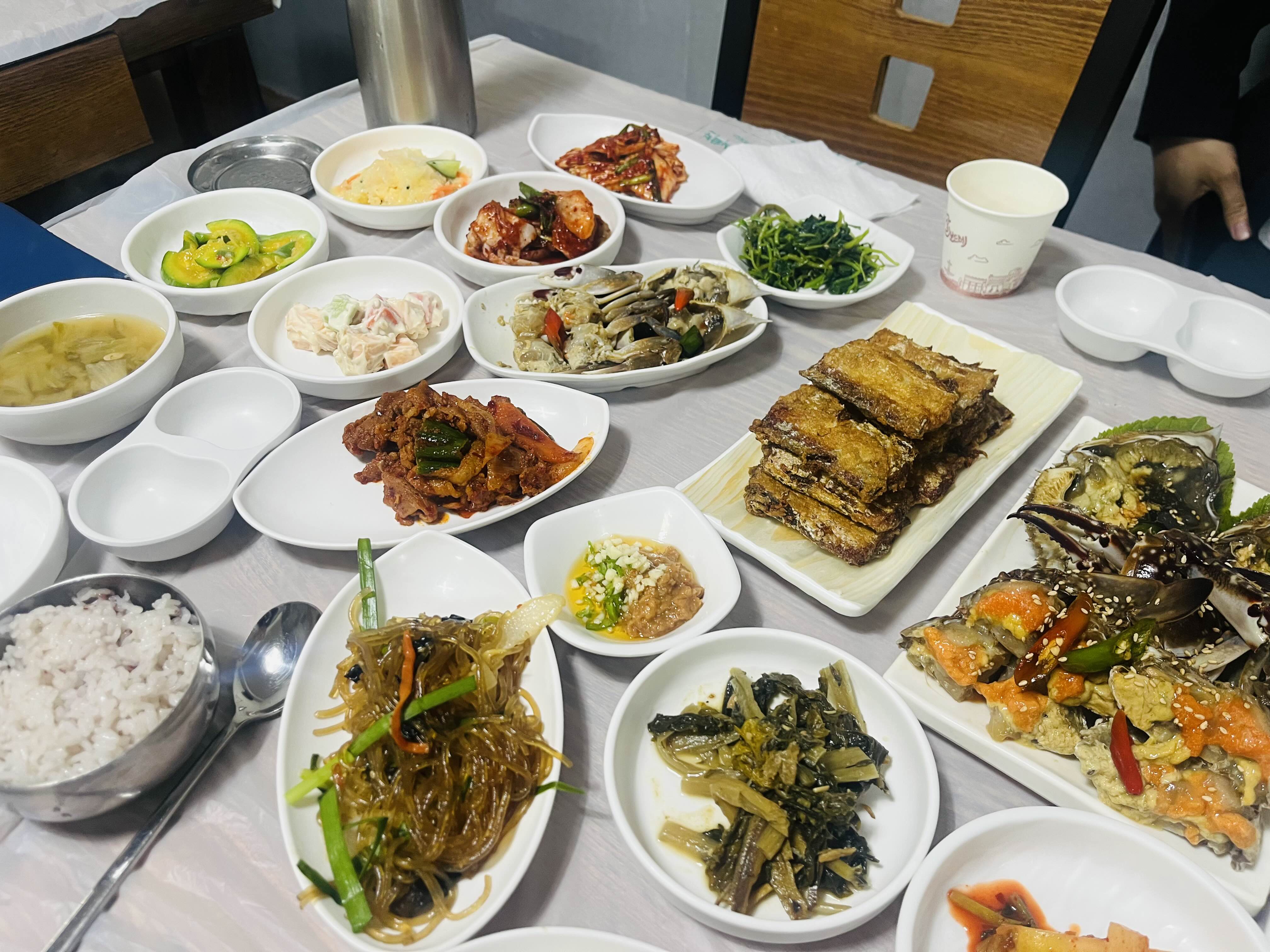 반찬 가짓수도 10개가 넘고, 제가 좋아하는 갈치구이에 간장게장, 광어회까지..