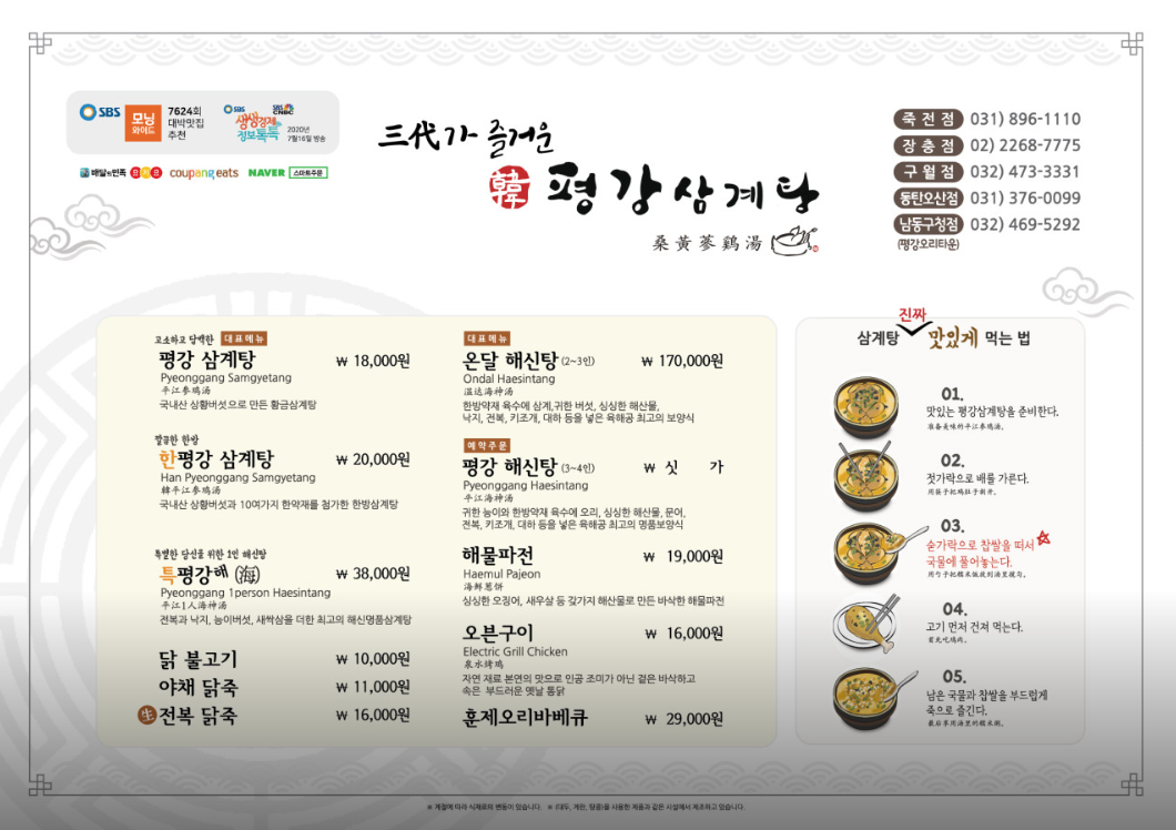저희는 모두 평강 삼계탕으로 통일!