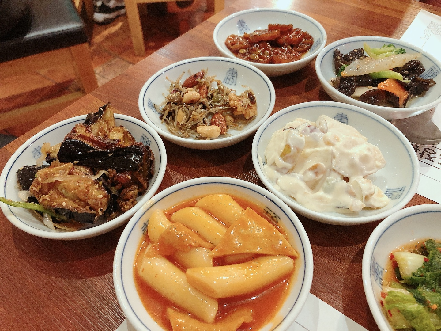 앉고나서 5분 정도 뒤에, 9가지 반찬이 셋팅되었어요!