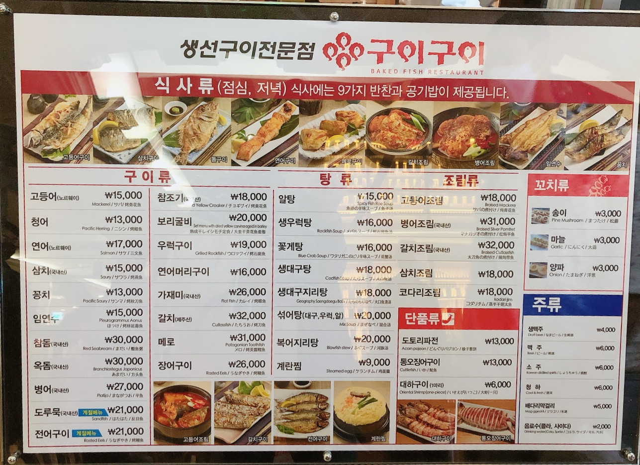 가격표도 옆에 같이 나와있었는데, 처음엔 국내산이라고 하는 삼치를 먹어보려고 하다가,