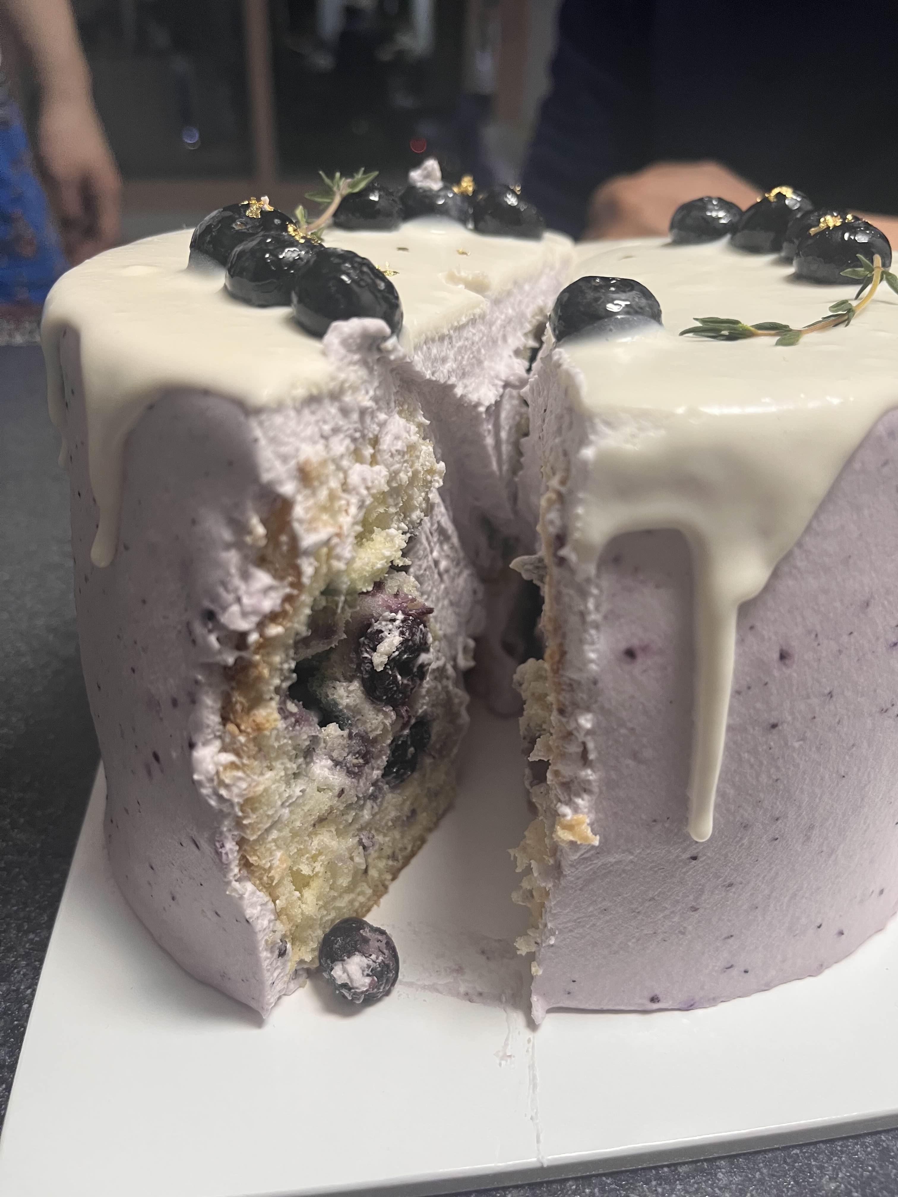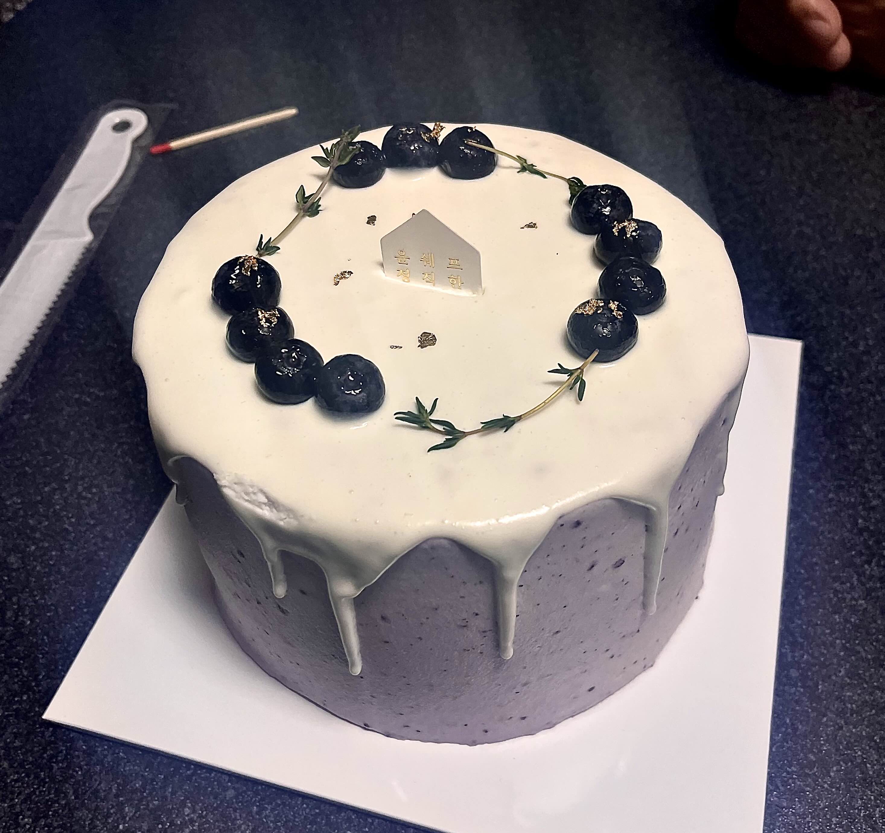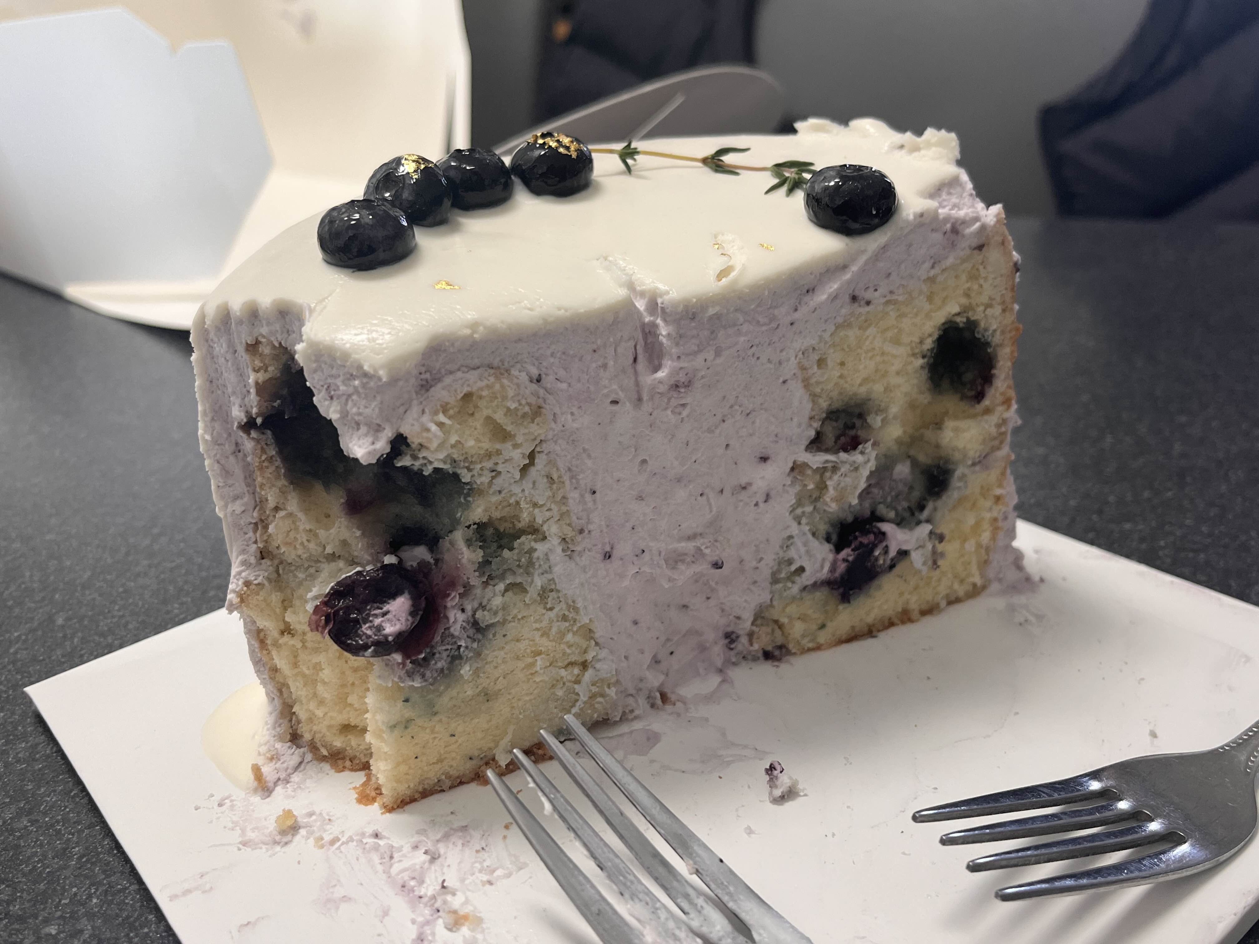 개인적으로는 바로 먹었을 때보다 하루 냉장고에 넣어놓고 크림이 약간 단단해졌을 때 먹으니까 더 맛있었어요! 케이크 한 가운데에 크림이 넣어져 있는데, 쉬폰이 또 크림이 너무 많으면 느끼할 때가 있잖아요~ 근데 이건 겉에는 얇게 크림이 발라져 있고 안쪽에 적당량 크림이 있어서 딱 좋았던 거 같아요! 블루베리크림은 꽤 달달해요! 이 케이크의 느낌을 한 마디로 말하자면 촉촉상큼달달💜 케이크맛에 꽤 만족했어서 다음에 빵도 먹어보러 가고 케이크도 다른 것도 먹어보고 싶어졌어요. 혹시 케이크를 사러 잠실을 배회 중이시라면, ”엔제리너스X윤쉐프정직한제빵소“를 추천합니다😊
