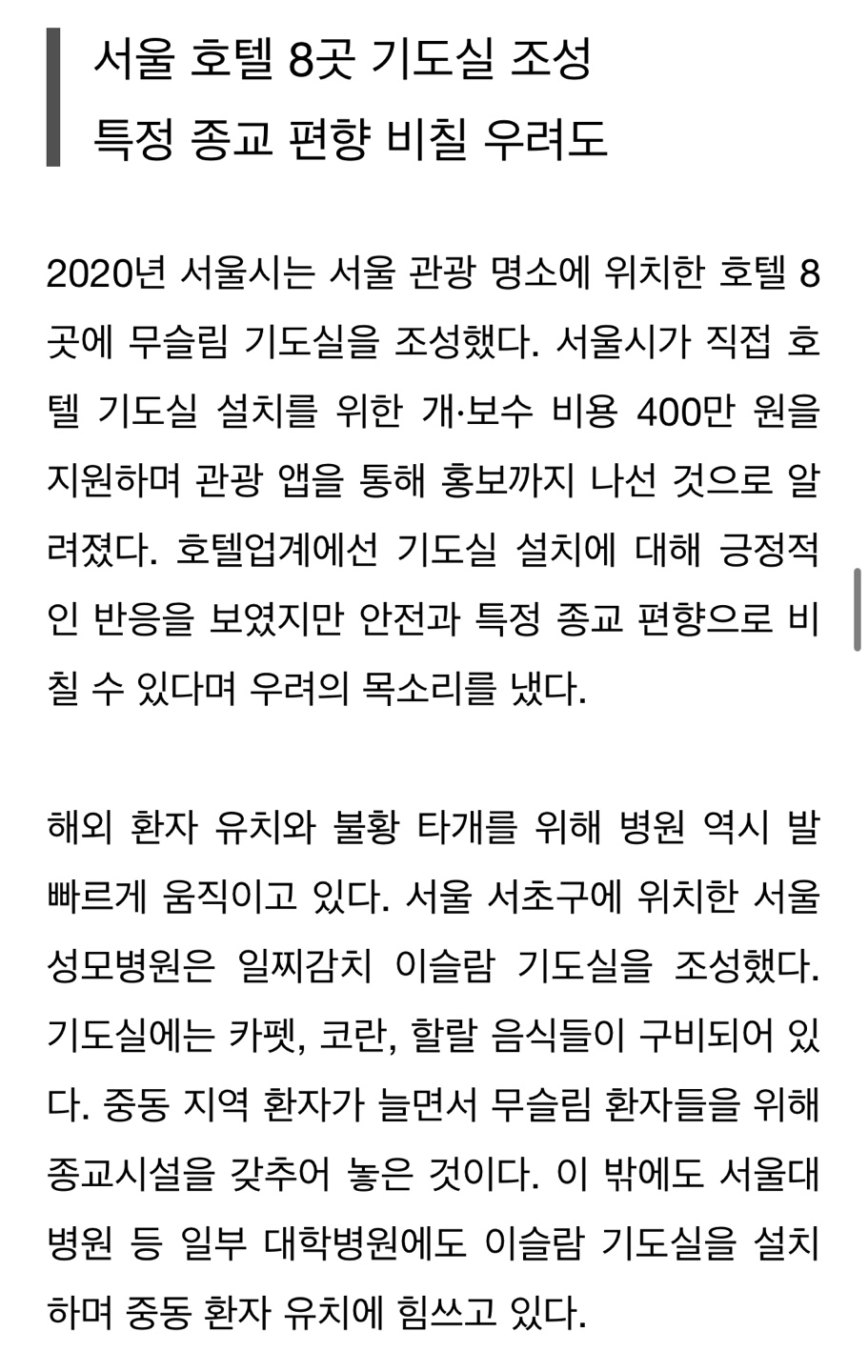 코로나 전에 만들어진 무슬림기도실들의 현 상황