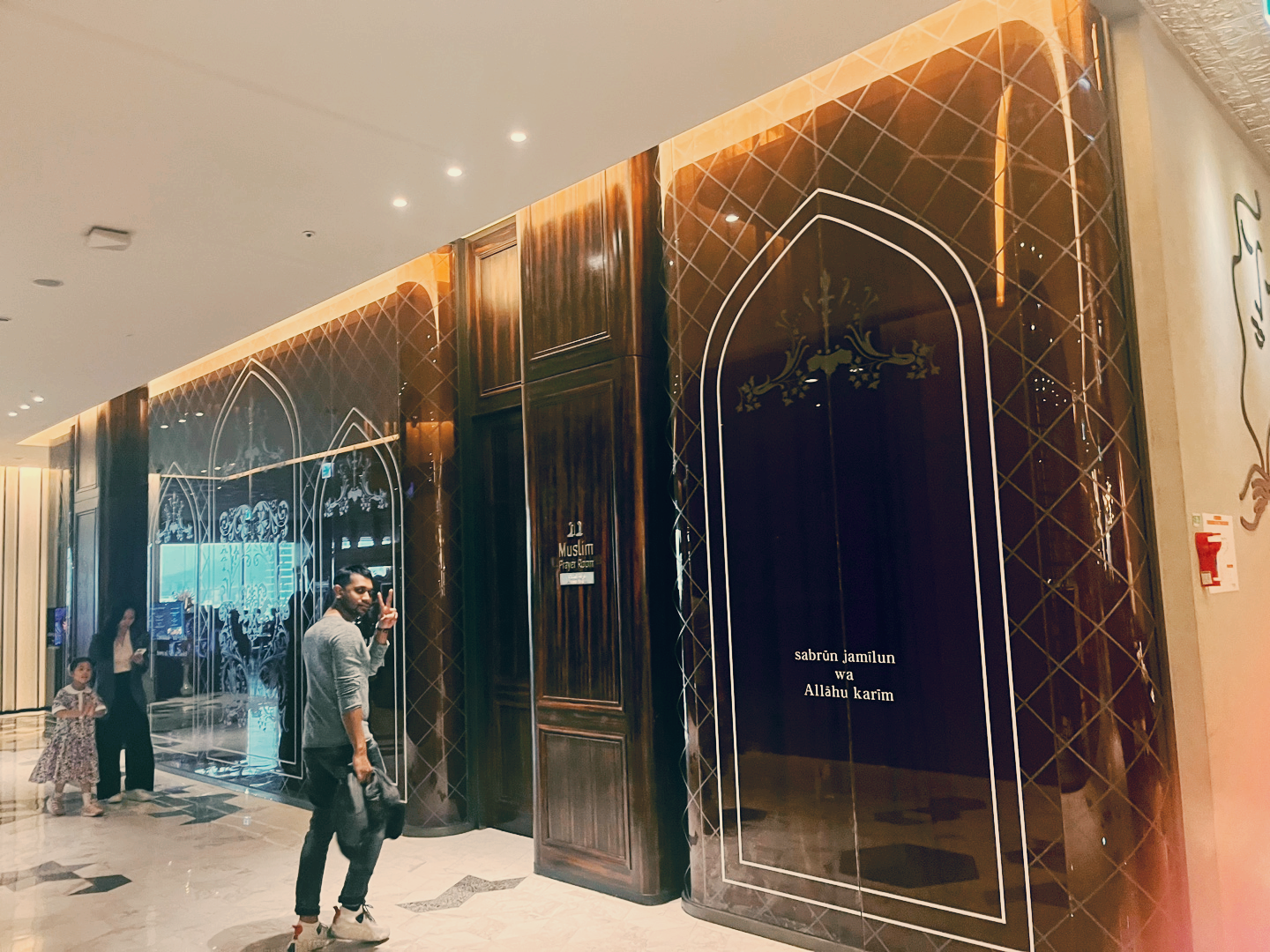 남자친구가 무슬림인지라, 라마단 기간에는 기도할 수 있는 사원가 있는 이태원에서 주로 데이트를 했었는데, 코로나 때문에 운영이 일시중지되었었던 잠실 에비뉴엘 무슬림 기도실이 다시 운영을 재개했다는 반가운 소식을 접했다. 우리가 주로 데이트하는 지역이 잠실이기 때문에 매우 편리하게 데이트 할 수 있게 되어 롯데에 정말 감사한 마음이다. 기도실의 조건을 말하자면 조용하고 깨끗한 곳이어야 하고, 몸을 깨끗이 하기 위해 세족실이 있어야 하며, 남녀가 기도할 수 있는 장소가 분리되어 있어야 한다. 잠실 에비뉴엘의 기도실은 깨끗하고 프라이빗하며, 남녀 기도실이 분리되어 있고 각각의 세족실이 함께 있었다. 인테리어도 차분하고 아늑한 분위기로, 벽지 문양에서도 이슬람 분위기가 느껴진다.