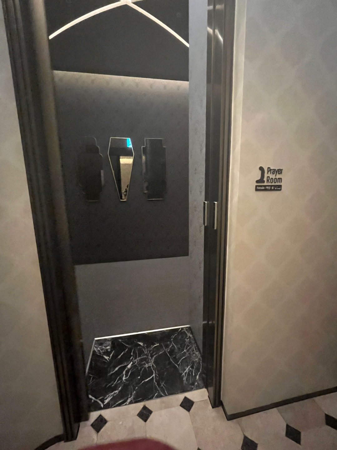 남자친구가 무슬림인지라, 라마단 기간에는 기도할 수 있는 사원가 있는 이태원에서 주로 데이트를 했었는데, 코로나 때문에 운영이 일시중지되었었던 잠실 에비뉴엘 무슬림 기도실이 다시 운영을 재개했다는 반가운 소식을 접했다. 우리가 주로 데이트하는 지역이 잠실이기 때문에 매우 편리하게 데이트 할 수 있게 되어 롯데에 정말 감사한 마음이다. 기도실의 조건을 말하자면 조용하고 깨끗한 곳이어야 하고, 몸을 깨끗이 하기 위해 세족실이 있어야 하며, 남녀가 기도할 수 있는 장소가 분리되어 있어야 한다. 잠실 에비뉴엘의 기도실은 깨끗하고 프라이빗하며, 남녀 기도실이 분리되어 있고 각각의 세족실이 함께 있었다. 인테리어도 차분하고 아늑한 분위기로, 벽지 문양에서도 이슬람 분위기가 느껴진다.
