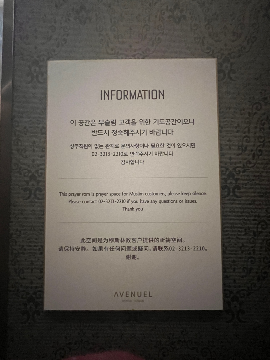 잠실 롯데 에비뉴엘 무슬림 기도실 둘러보기!