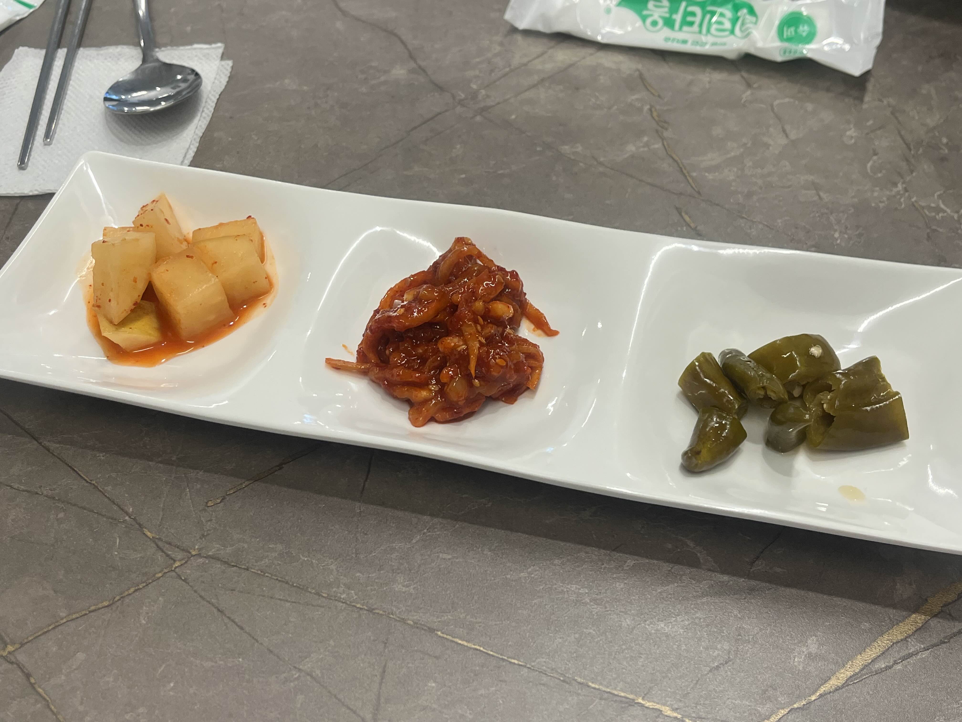 요렇게 3가지가 기본으로 가져다주는 반찬이었는데, 셋 다 맛있었지만