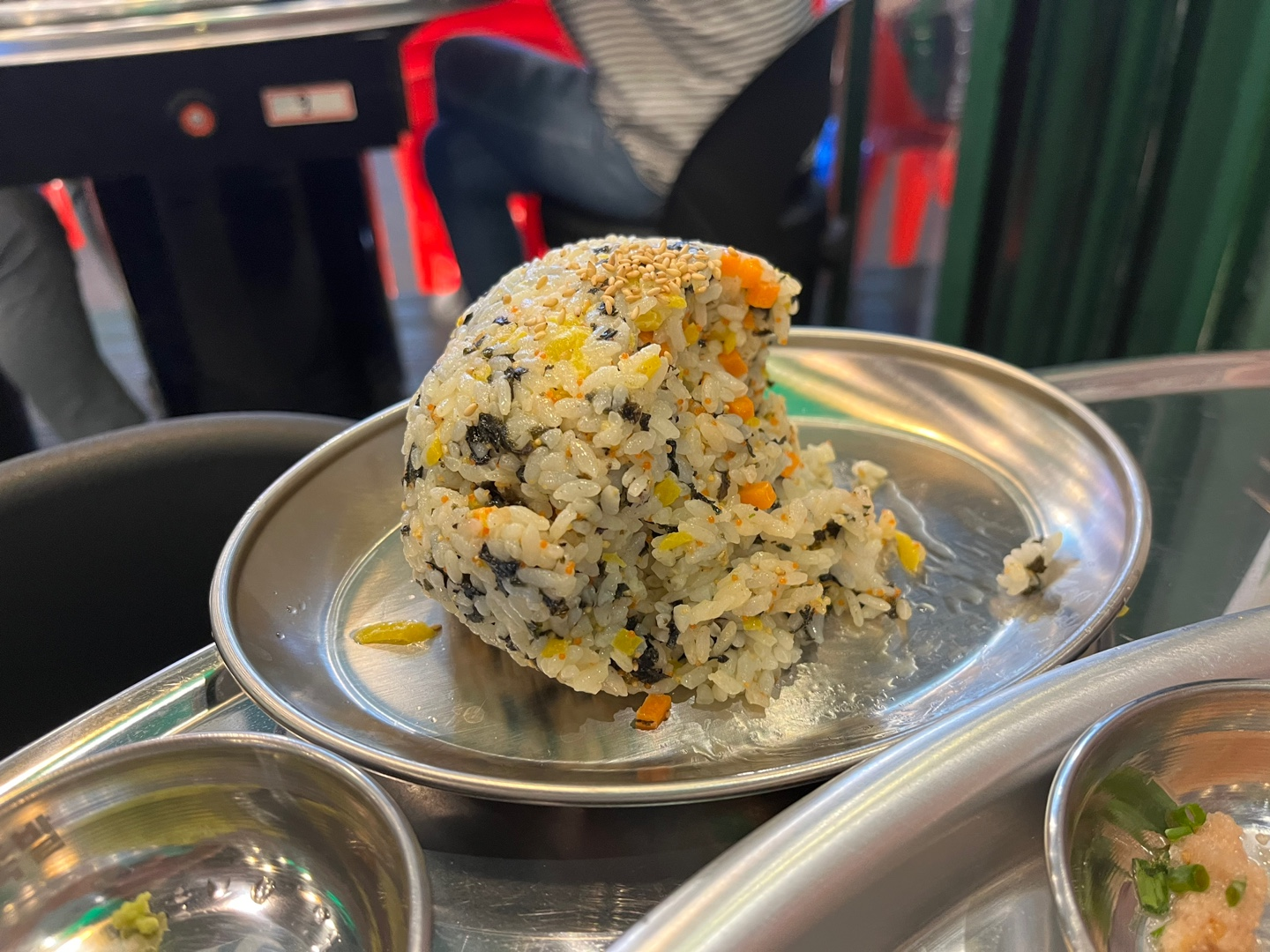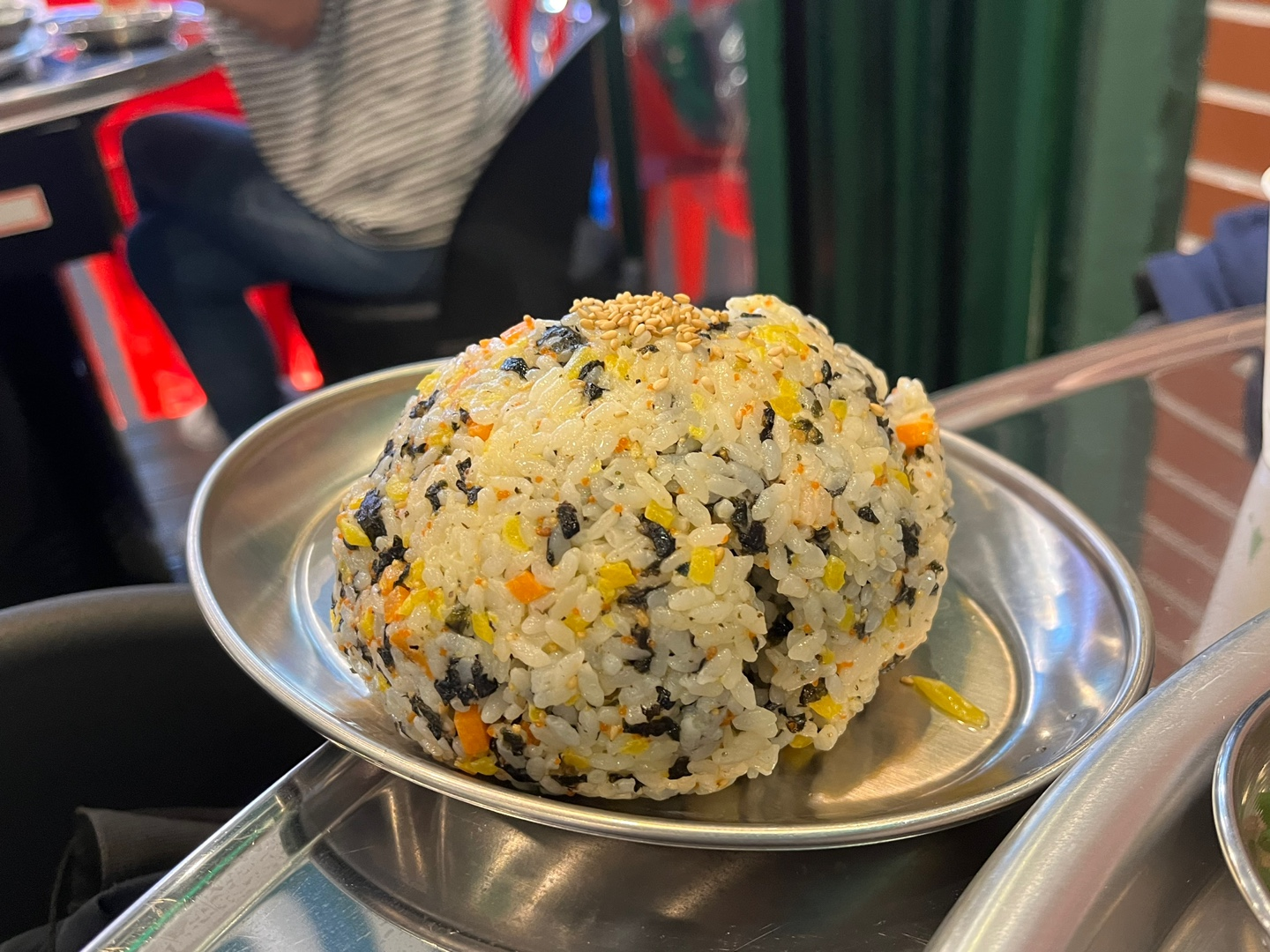 공기밥이 따로 안 나와서 함께 시킨 주먹밥! 만들어 먹으라고 비닐장갑이랑 재료랑 나올 줄 알았는데, 돌덩이 같은 큰 주먹밥으로 만들어져서 나왔어요! ㅋㅋㅋ 당황.. 하지만 오히려 수고를 덜어서 빨리 먹을 수 있어서 좋았어요. 제가 찍은 주먹밥 사진들은 나와서 바로 찍은 게 아니고 이미 먹다가 찍은 거라서 파먹지 않은 쪽을 살짝 돌려서 한 번 더 찍은.. 😜 족발과 먹기 딱 좋은 삼삼한 간이었어요! 다만 초밥밥을 추가해서 먹는 게 더 나을 거 같기도..? 둘이서 먹었는데 양이 좀 많더라구여 |