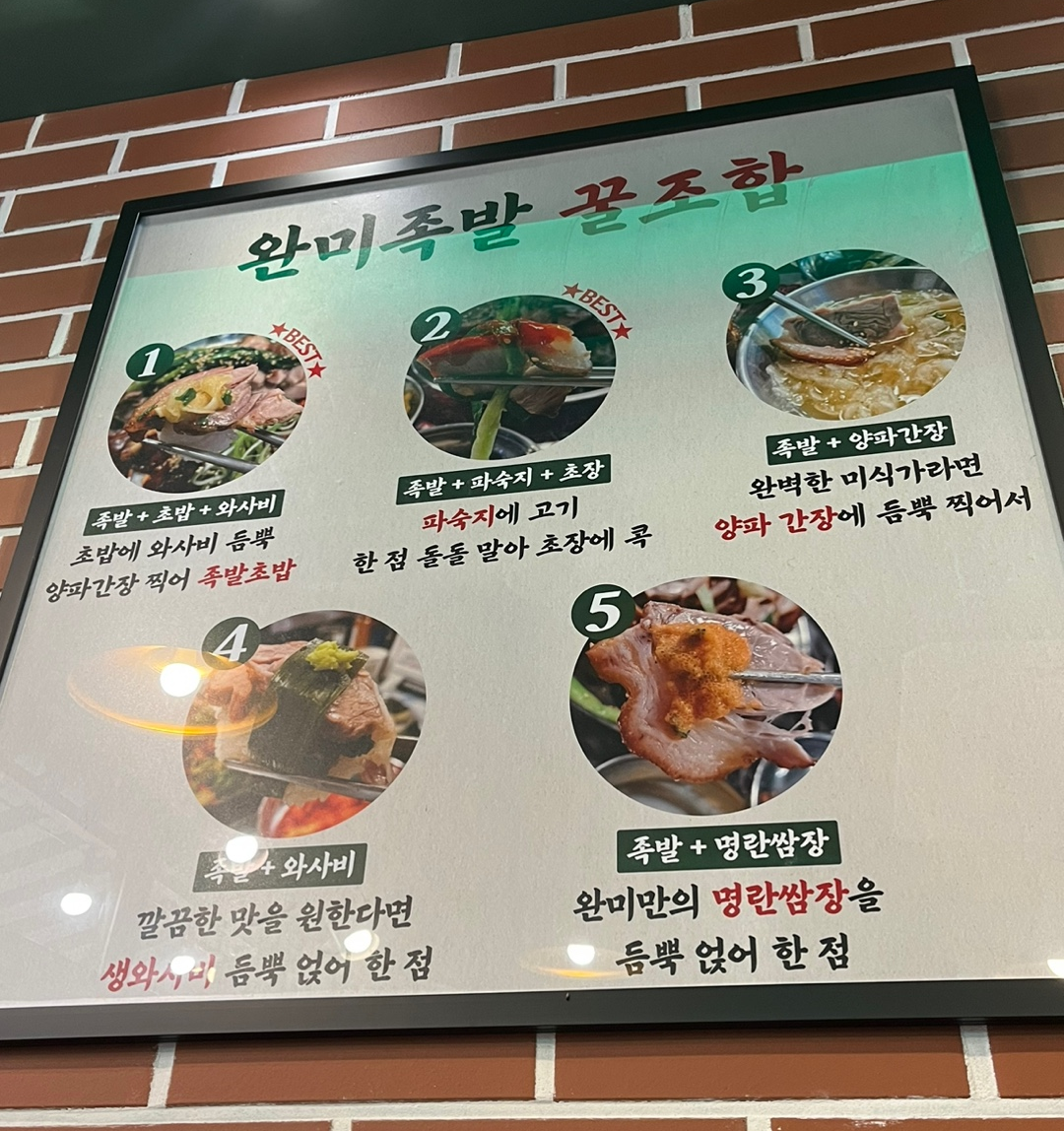 벽 한 쪽엔 이 집 족발을 어떻게 먹으면 맛있는지 친절하게 꿀조합도 설명되어 있는데요!