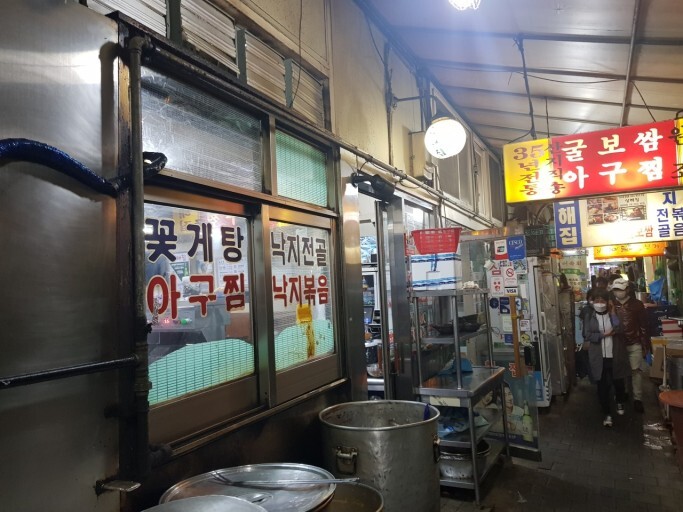 종로3가역(1호선쪽) 15번 출구 쪽에 위치한 종로3가 보쌈골목에는 굴보쌈을 전문으로 하는 오래된 가게들이 줄지어 있었어요. 신기했던건 굴보쌈을 시키면 감자탕이랑 굴전을 함께 준다는 거였는데요. 거의 모든 가게가 방송에 출연한 사진을 걸어놓고 있는 거 보면 방송에 많이 나왔던 골목인가봐요. 저는 굴을 별로 안 좋아해서 그런지 한국사람인데도 이런 곳이 있다는 걸 처음 알았네요. 우리가 외국 가면 현지 야시장 같은 곳이나 현지 사람만 가는 숨겨진 식당에 가보고 싶어하듯, 여기도 모든 가게가 낡은 노포여서 한국을 방문한 외국인 친구들을 데려가기 좋을 거 같아요!