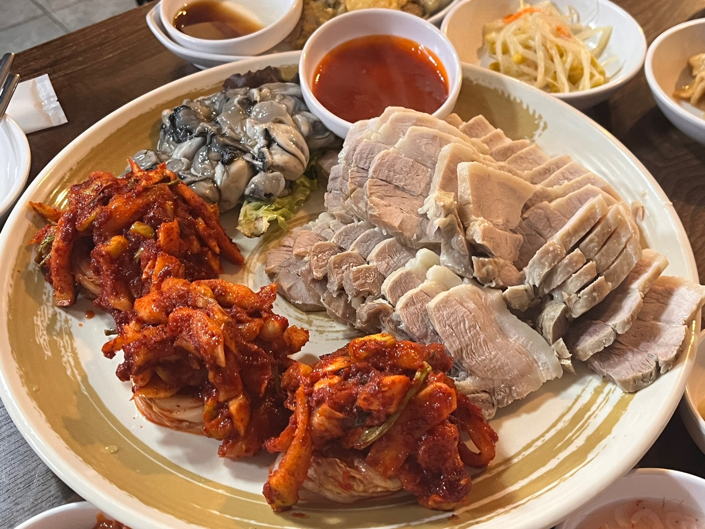 저희는 4명이서 가서 굴보쌈大짜를 시켰고(위 사진), 굴추가와 고기추가를 한 번씩 해서 4명이서 총 72,000원 들었네요. 한 명당 18,000원 정도에 감자탕과 굴전도 나오니까 가성비는 베리굿! 저희는 고기 많이 먹으려고 공기밥을 따로 시키진 않았고 술도 하지 않았지만, 밥을 시켜서 감자탕이랑 먹으면서 술도 마시면 굳이 굴과 고기를 추가할 필요 없을지도? 주변에 직장이 많으니까, 퇴근하고 소주 한 잔 하면서 먹으면 너무 좋을듯! 굴이 같이 나오다보니, 일반적인 보쌈의 大짜보다는 양이 많지 않아요. 삼겹살처럼 지방이 많은 부위가 아니라서 고기 자체는 좀 질겼어요. 그래서 그런지 엄청 맛있는 보쌈고기라는 생각은 들지 않았지만, 보쌈김치가 정말 너무너무 맛있었어요! 오독오독 식감과 달달하고 시원하게 퍼지는 액젓맛김치..!! 김치는 별도요금 없이 추가되더라구요! 굴도 비리지 않고 신선했어요! 일본에서 굴을 많이 먹잖아요~ 근데 보통 저렇게 작은 굴을 생으로 많이 먹기 보다는, 큰 굴을 굽거나 생으로 하나씩 먹거든요. 그래서 굴을 양껏 먹을 수 있다는 점에서는 일본 사람들에게 메리트인 것 같았어요! 한국사람들은 괜찮네 정도였는데, 일본 손님들은 정말 잘 드시더라구요~! 감자탕도 보쌈이랑 처음 먹어봤는데, 감자탕전문집은 아니니까 볼륨은 작지만 보쌈과 나름 잘 어울리고 감자탕이랑 같이 먹으니까 국물용도도 되고 보쌈을 더 맛있게 서포트해주더라구요! 굴전도 먹어보고 싶었는데, 따로 시키지 않아도 같이 나오는 것도 정말 맘에 들고, 딱 맛있는 굴전맛이었습니다! 다음에 일본 친구 데리고 가서 또 먹어보고 싶어요:)
