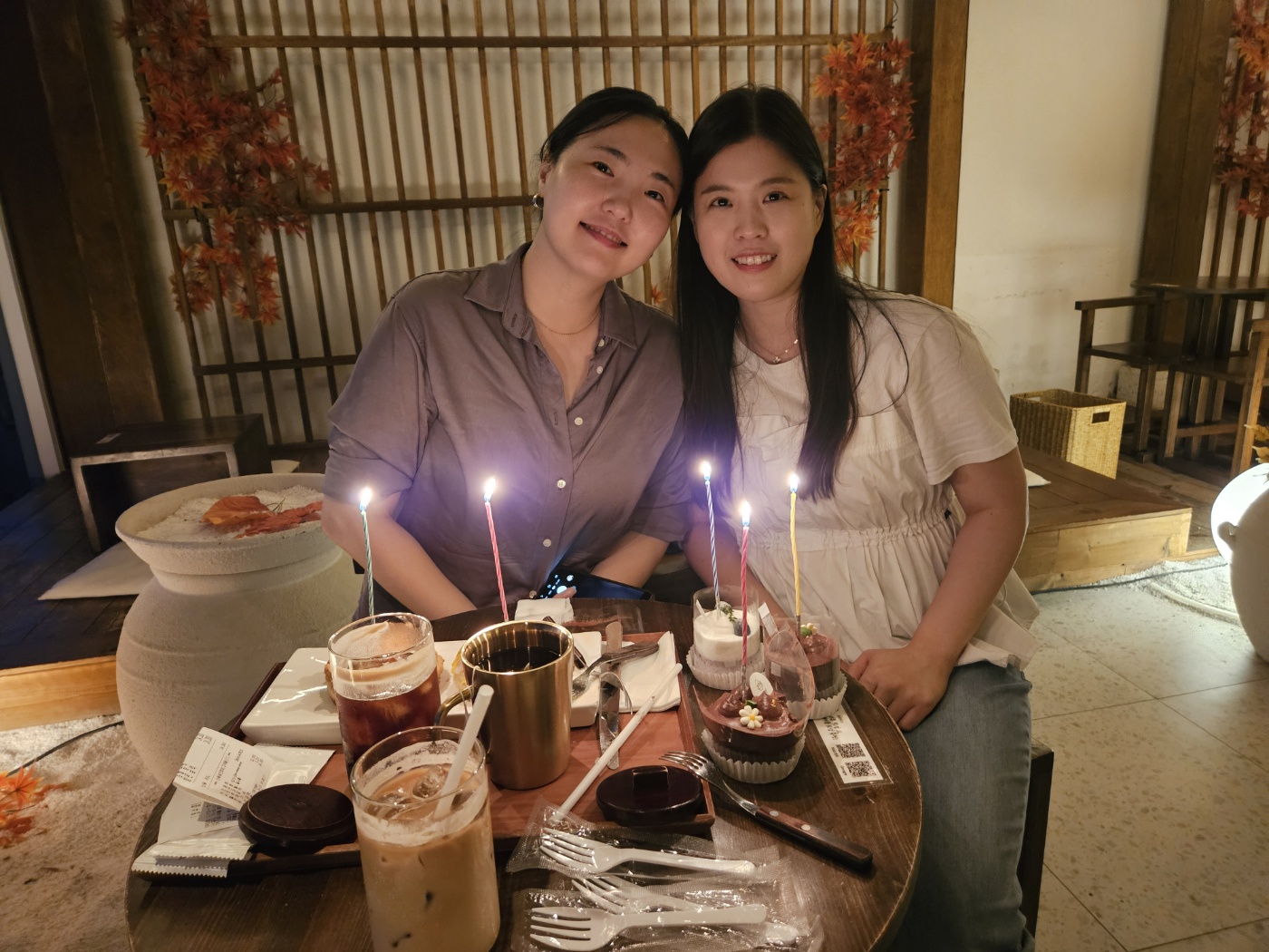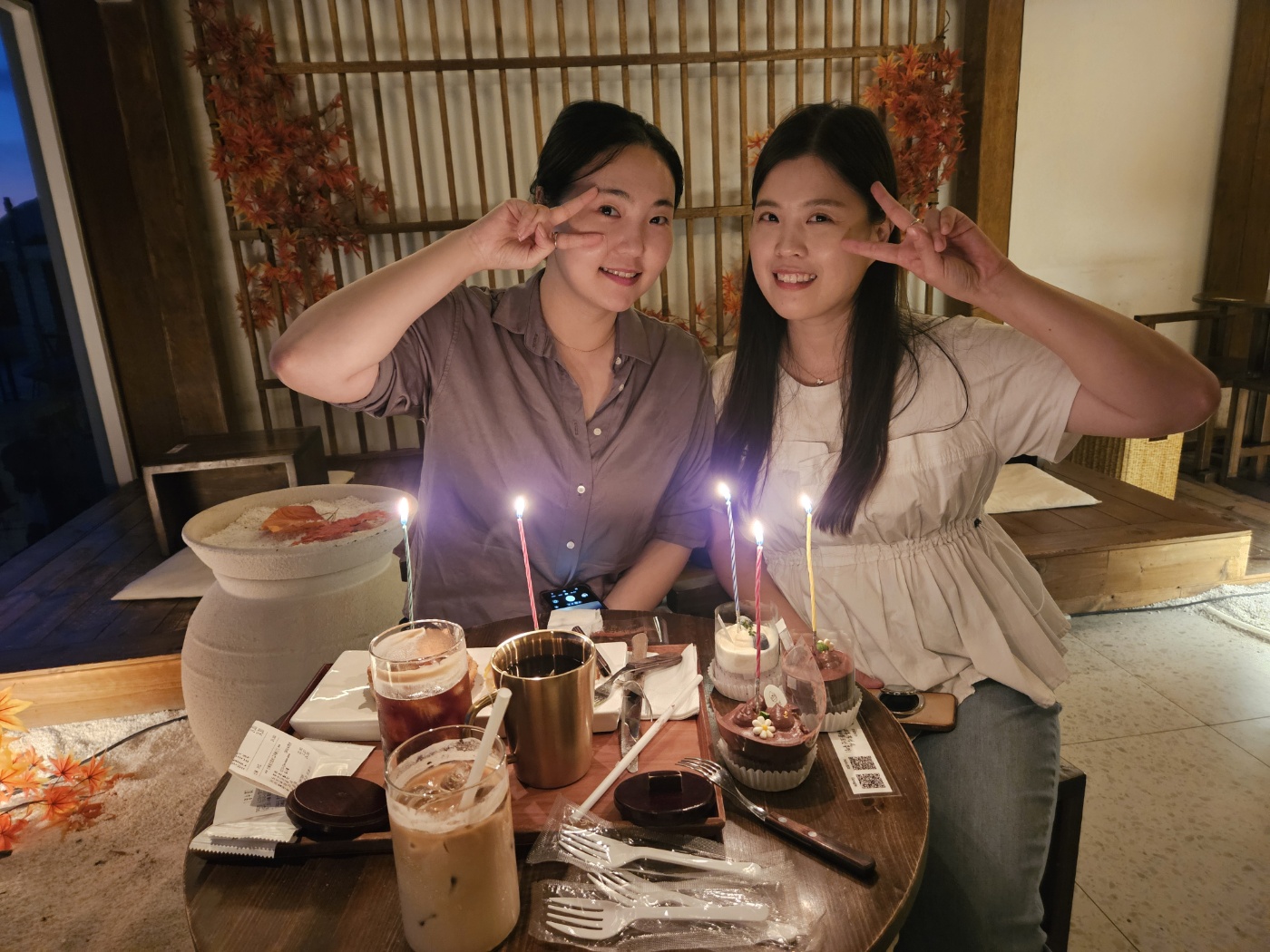 준비해온 생일초를 도넛에 꽂고 편하게 생일노래도 부르고 사진도 많이 찍었네요.