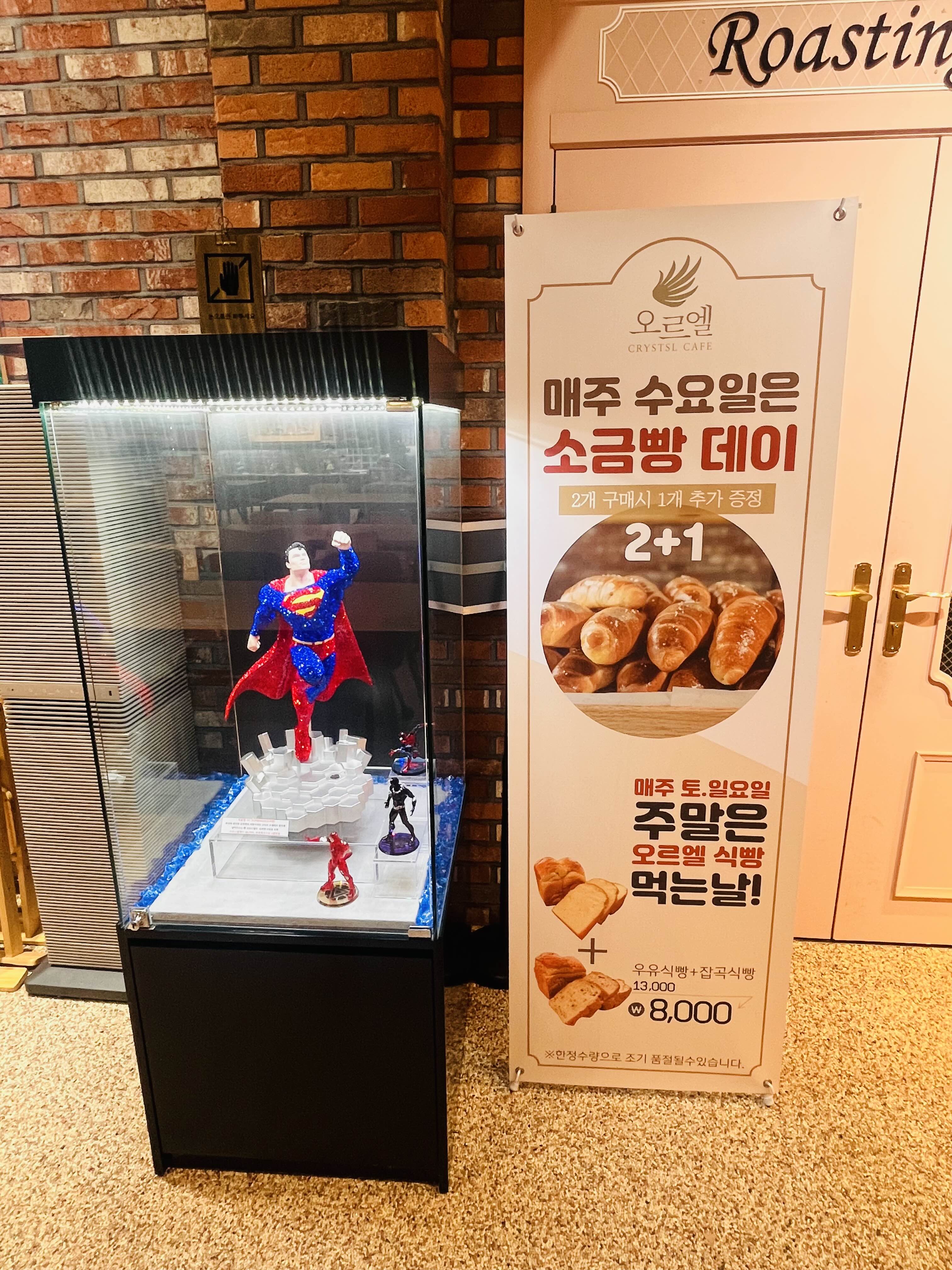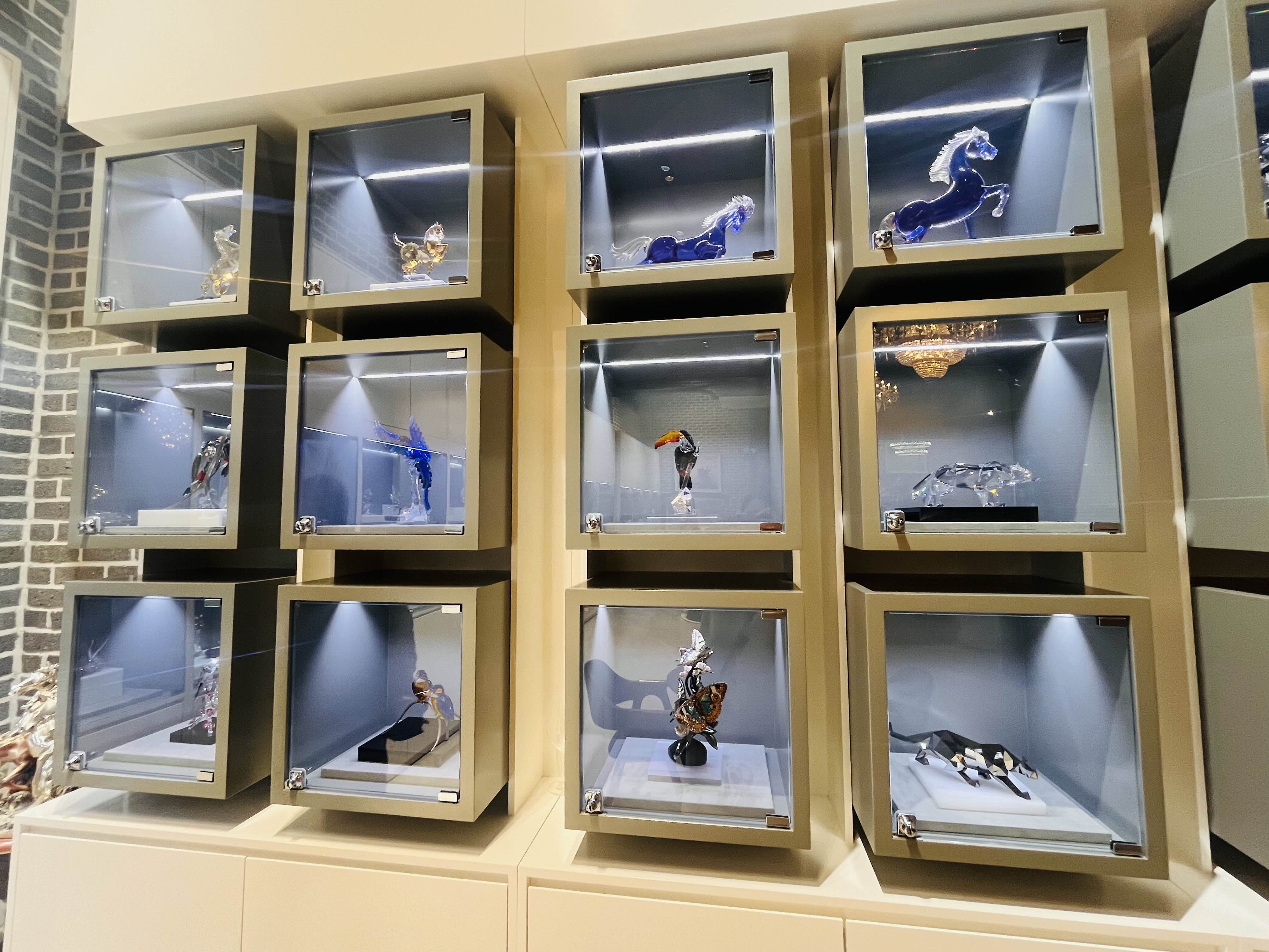오른쪽에 보시면, 사장님이 모으셨다는 크리스탈 작품이 전시되어 있어요.