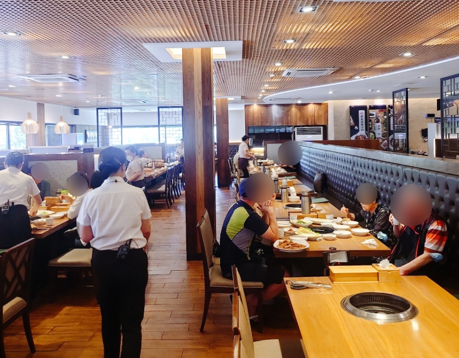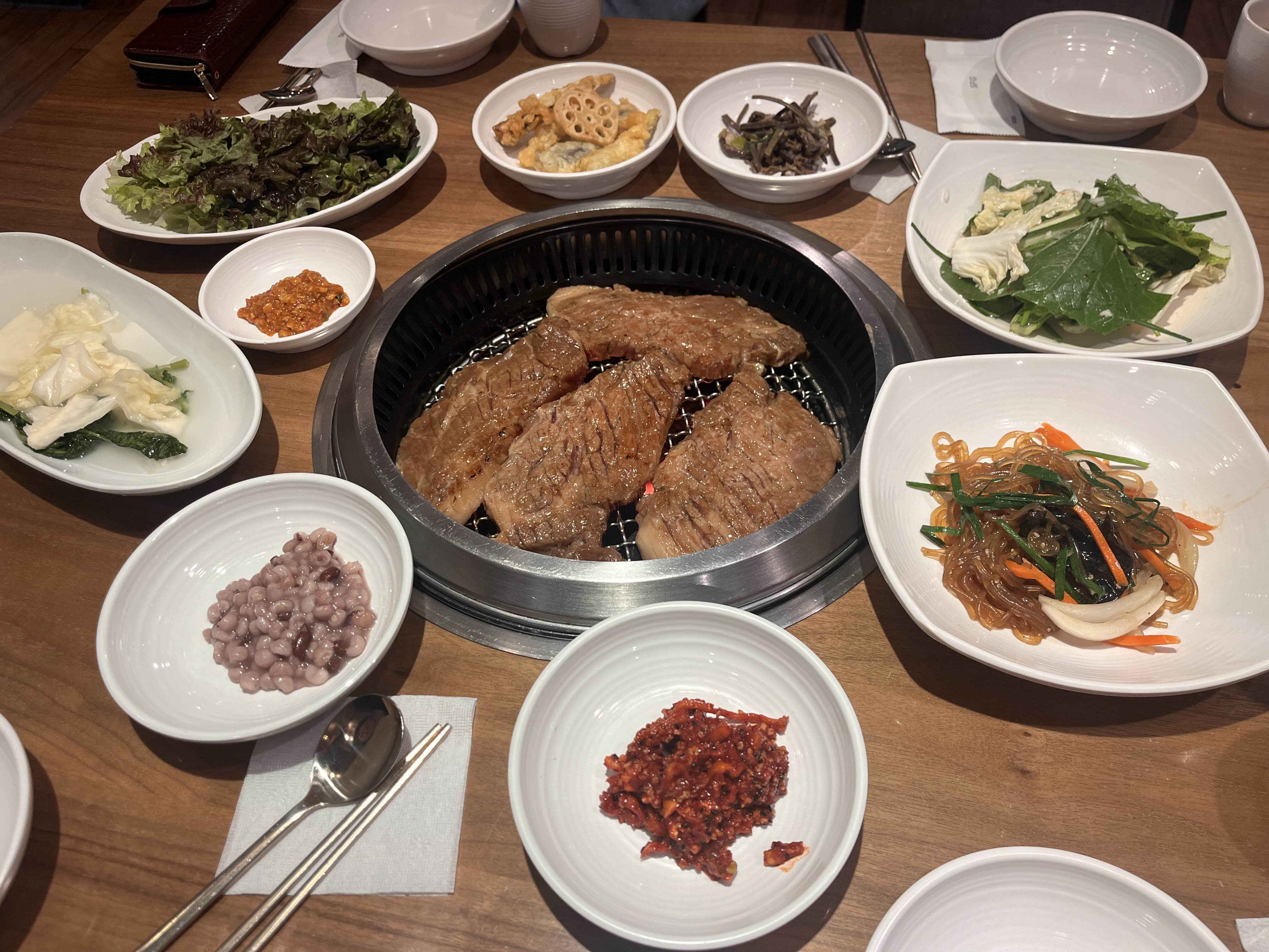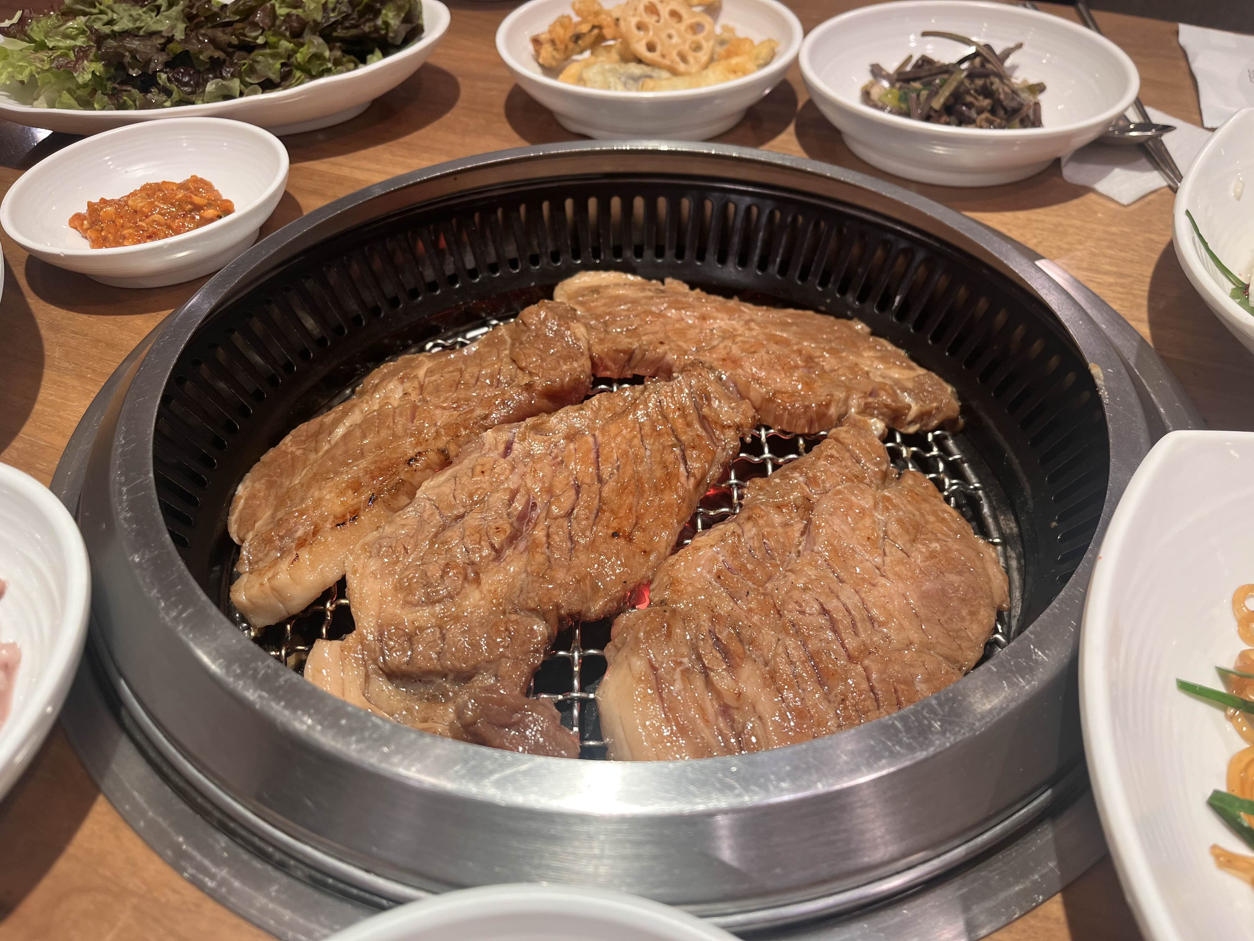 아주머니들이 반찬도 그때그때 알아서 채워주시고, 고기도 너무 잘 구워주시고