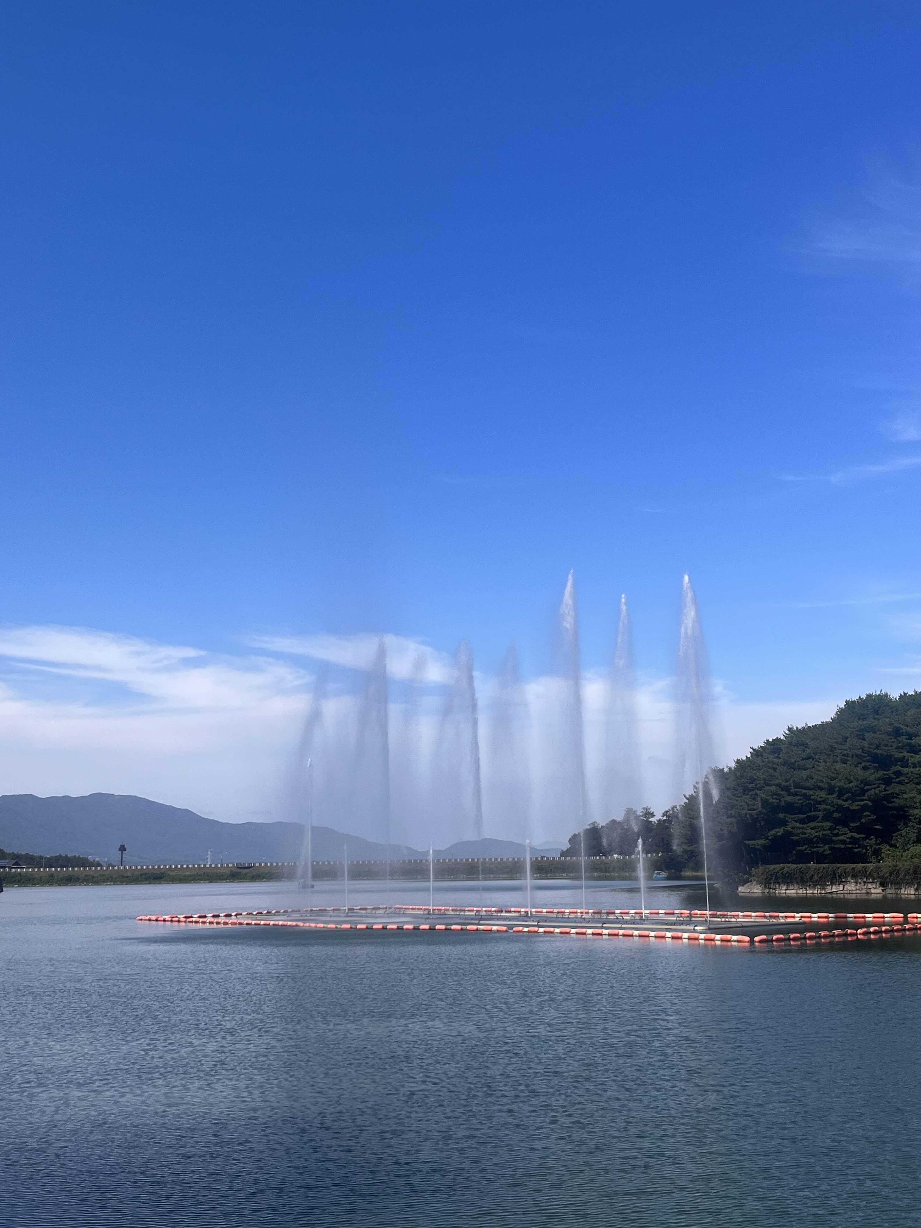 걸어가다보면 분수도 보이는데, 더운 날씨에 분수를 보니 속이 시원하더라구요. 만들어진지 얼마 안 되었다고 하는데, 주변에 부표색을 다른 색으로 하면 더 분위기 있지 않았을까 하는 살짝의 아쉬움이..!😂