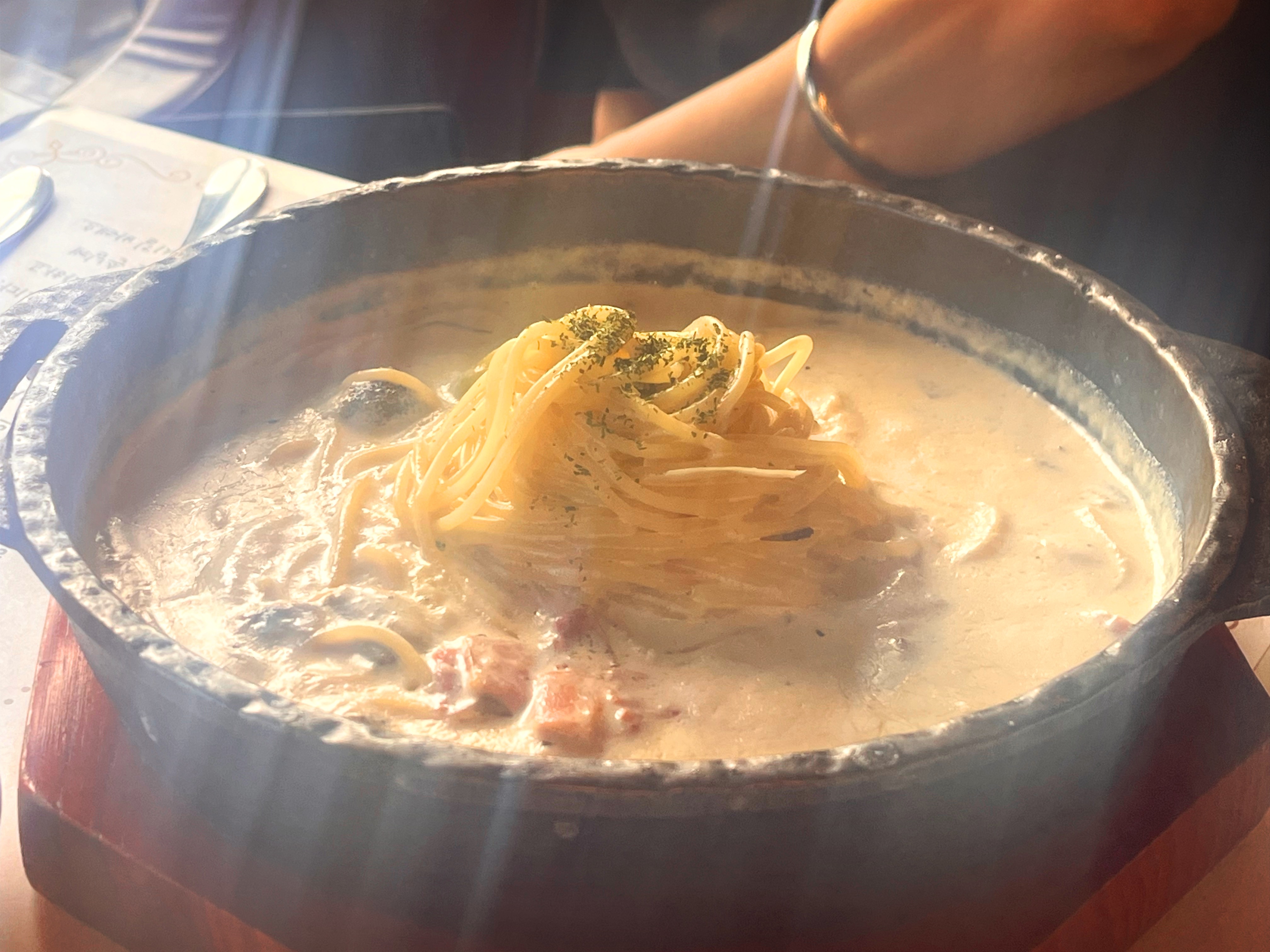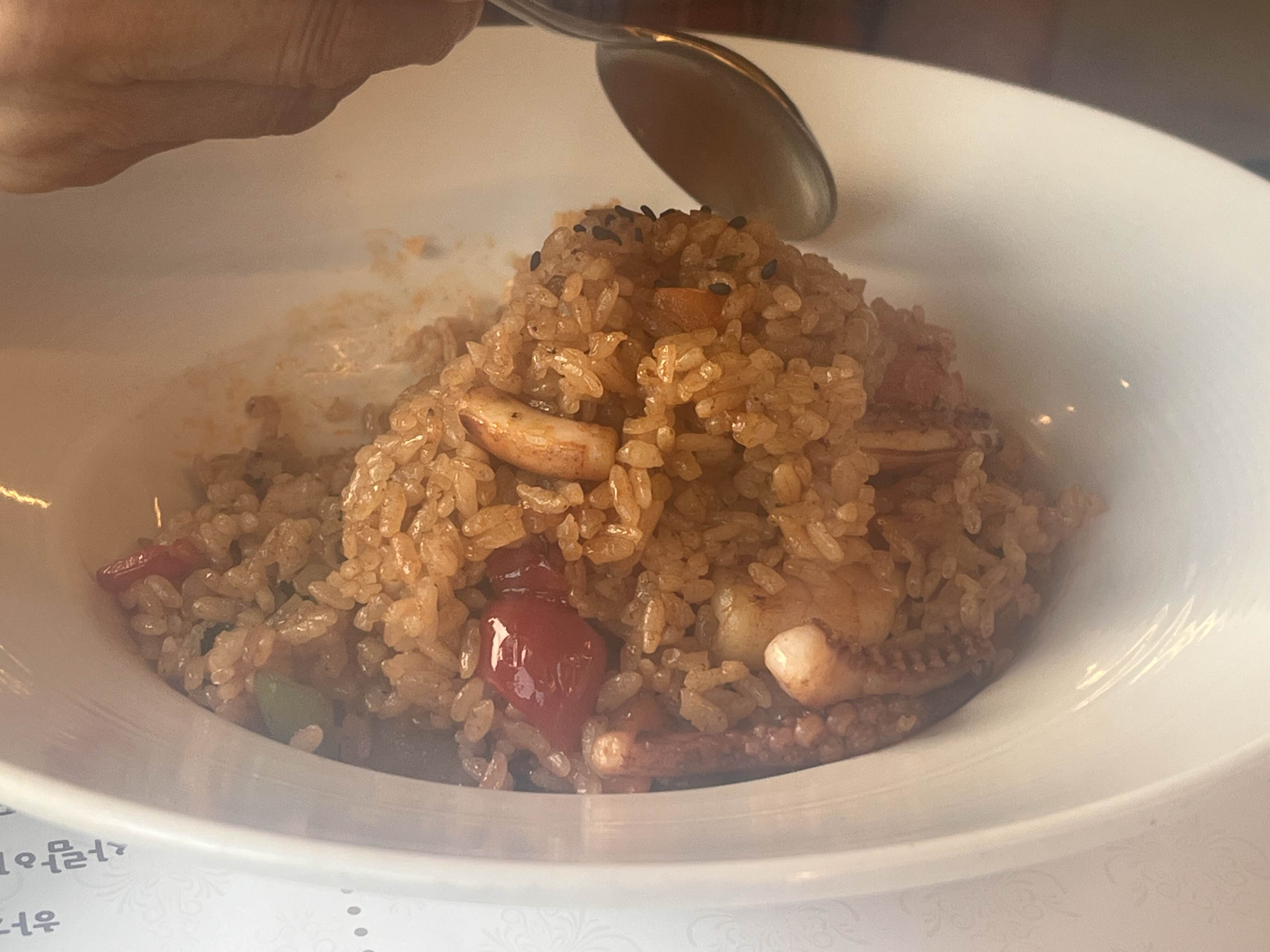 가격이 높은 편이긴 하지만 그만큼 양이 많았어요. 특히 누룽지파스타(22,000) 같은 경우는 파스타 밑에 누룽지가 깔려 있어서 1.5인분 같은 느낌! 크림소스 좋아하시는 분들은 소스 안 남기고 싶어하시잖아요~ 근데 여긴 누룽지가 이미 깔려 있어서 소스랑 같이 밥을 먹을 수 있어서 별미예요! 소고기라이스의 경우엔 간이 좀 심심한 편인데, 아이들이랑 오셨을 때 시켜주시면 자극적이지 않아서 좋을 거 같아요. 갈릭오일파스타는 조금 자극적이면서도 짜지는 않은 적당한 간이고, 해물라이스는 오징어가 많이 들어가있더라구요.
