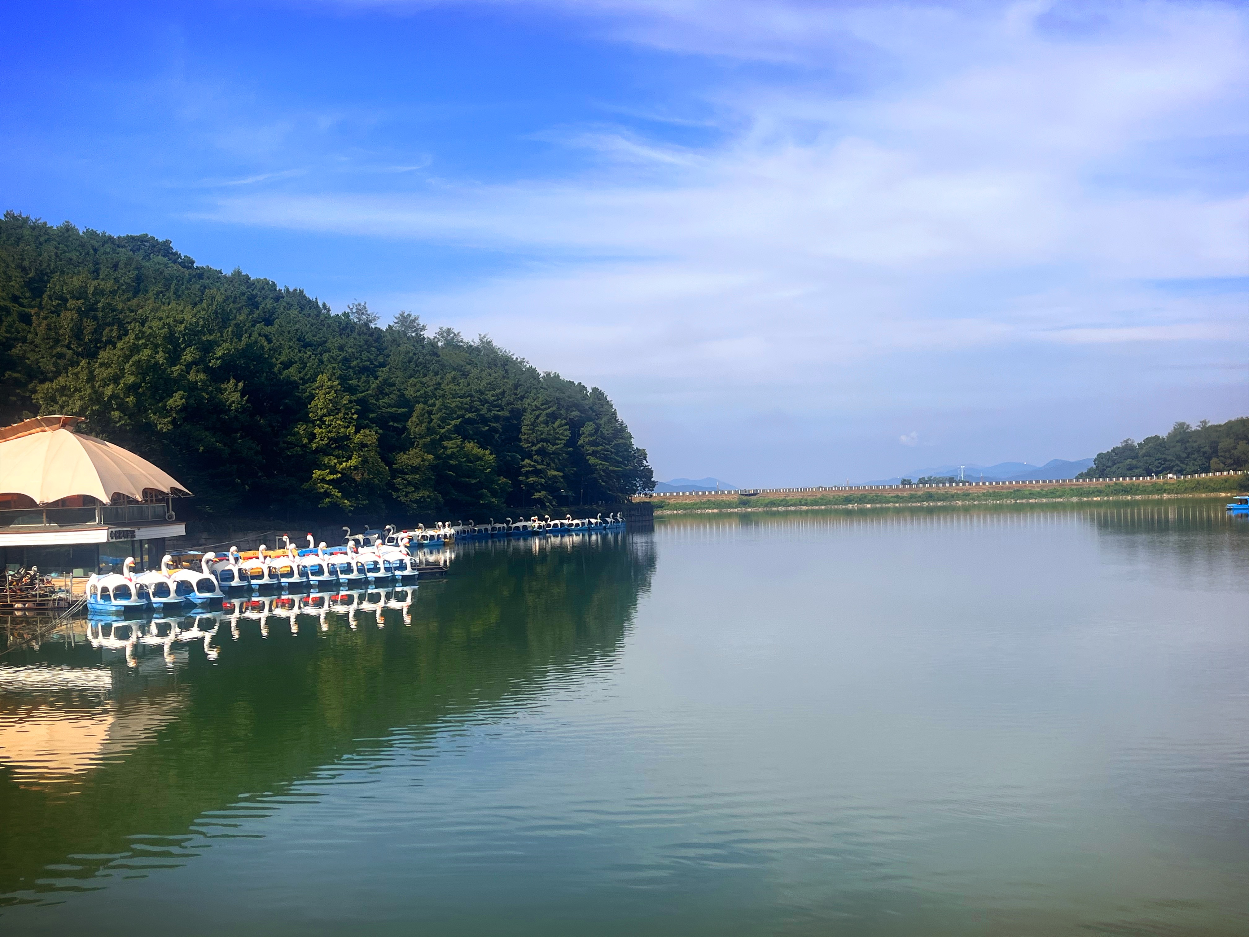정원 옆쪽으로 저수지 가장자리를 따라 걸을 수 있는 산책로가 있는데요. 저수지엔 오리배도 있어서 선선해지는 노을무렵 타면 좋을 거 같아요. 여기는 호수가 아니라 저수지라서 물이 이렇게 가득 들어와있을 때도 있는가 하면 수면이 낮아질 때도 있다고 하네요.