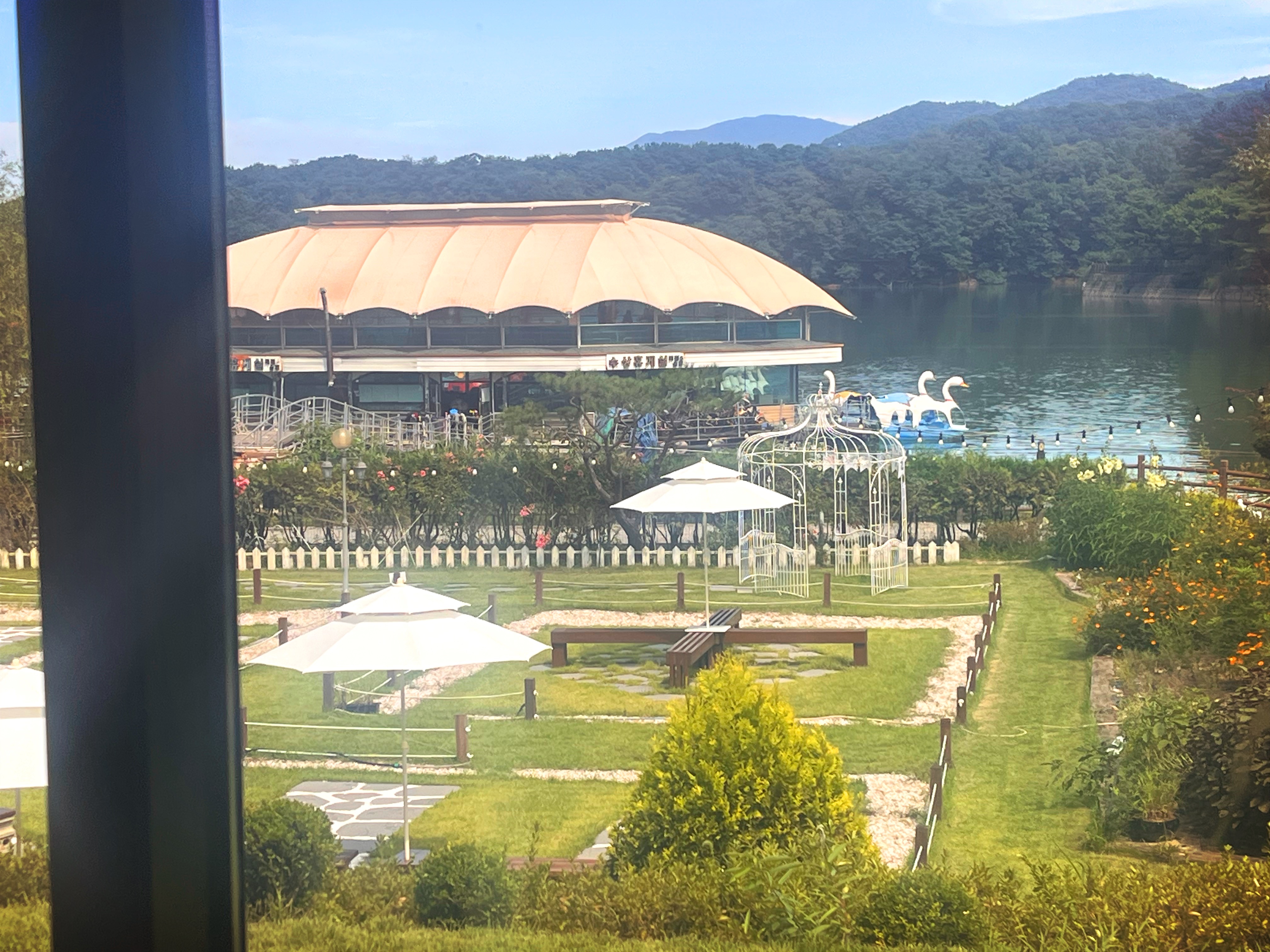 식사가 끝나고서는 주변에 저수지도 있고 카페정원도 예쁘게 꾸며져 있어서 산책을 나갔어요.